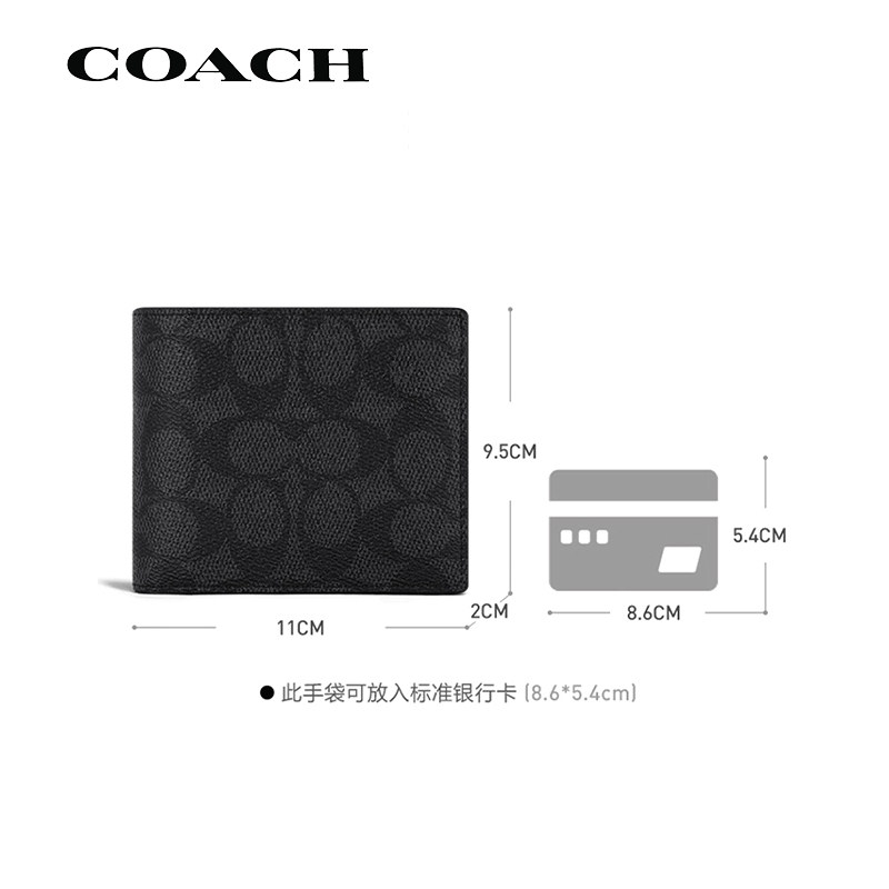COACH/蔻驰男钱包Wallet 11经典标志多卡槽送男友爸爸礼盒款CW344