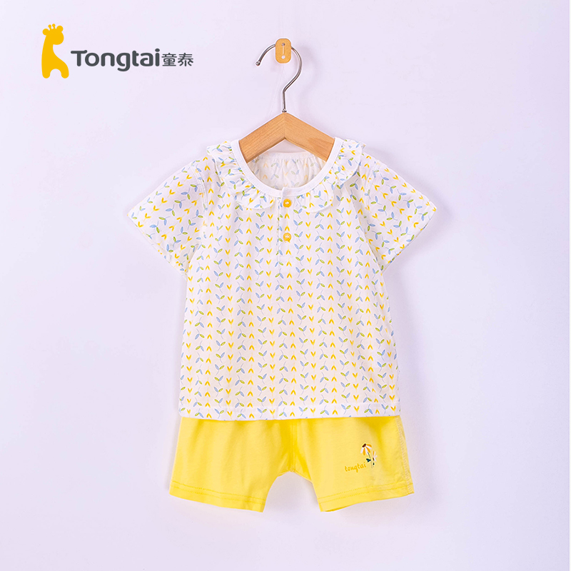 童泰女宝宝夏装花边领清新外出套装婴幼儿小童纯棉短袖短裤薄款