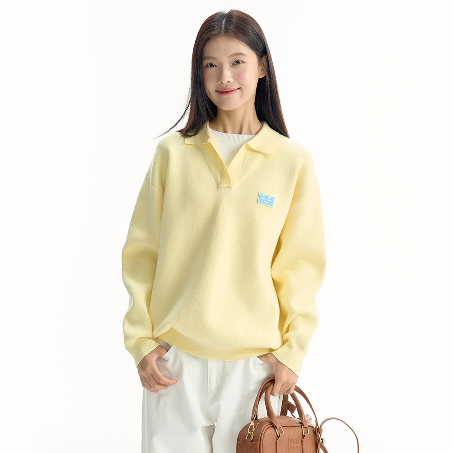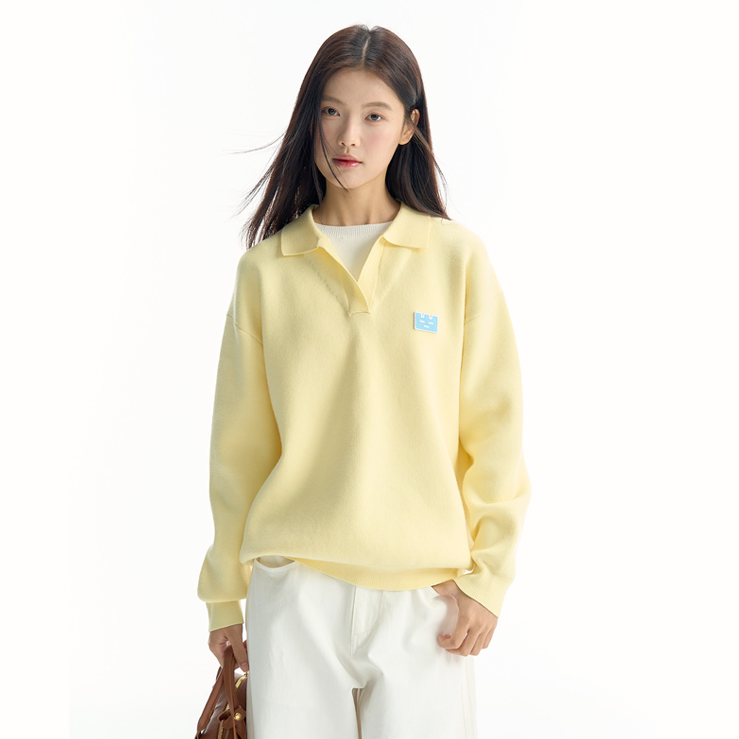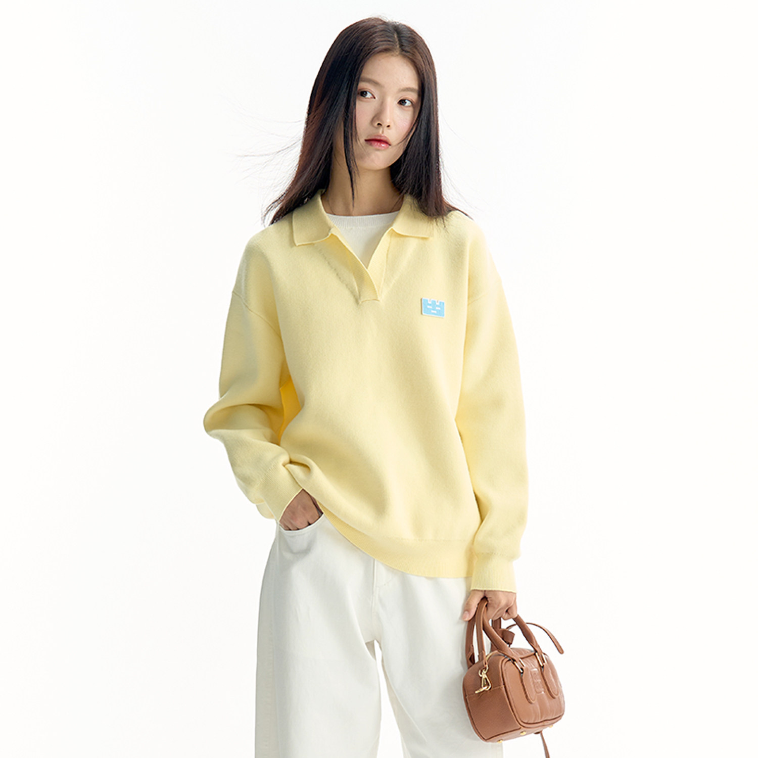 TGWALL「云朵泡芙」假两件翻领毛衣软糯慵懒刺绣学院针织衫女上衣
