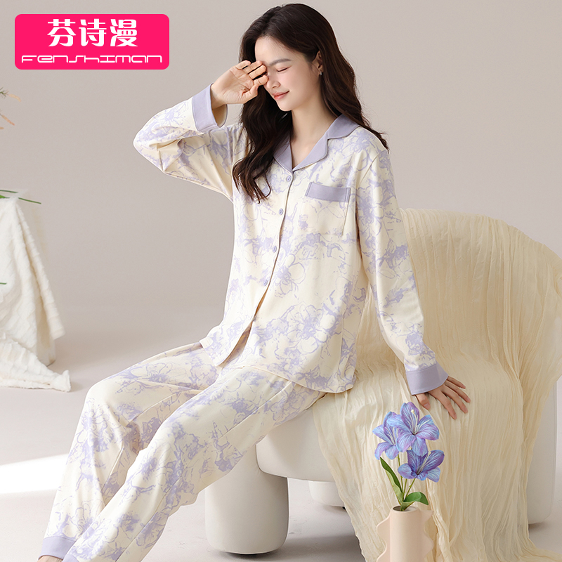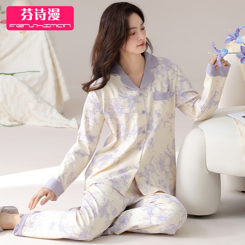 睡衣女士春秋纯棉长袖家居服