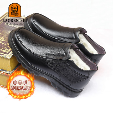 【真皮羊毛加绒】老人头男鞋高帮棉鞋男皮鞋父亲爸爸鞋保暖雪地靴