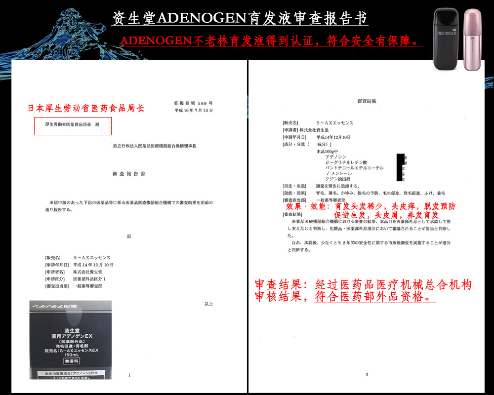 日本原装资生堂不老林ADENOGEN黑色加强版密发生发育发液头皮精华