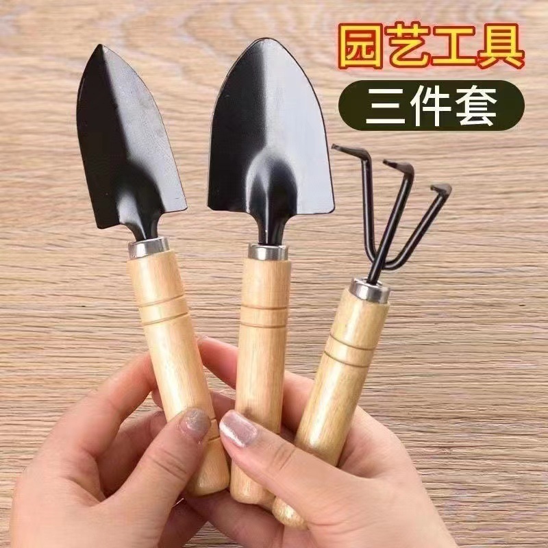 木柄园艺三件套铁锹锄头锄草懒人工具小耙子多肉室内家用多齿种花