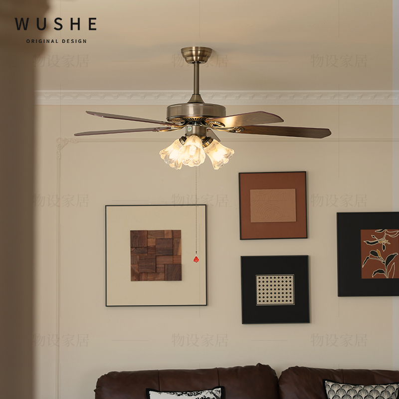哈维法式中古智能变频餐厅风扇灯中古风卧室灯美式复古客厅吊扇灯