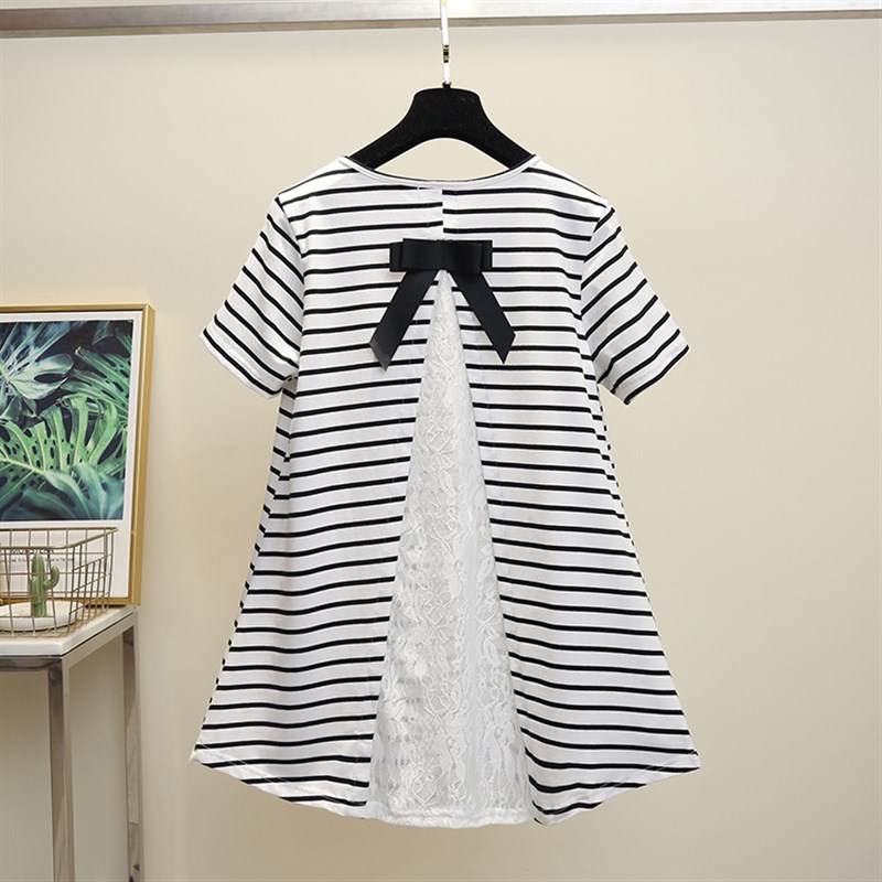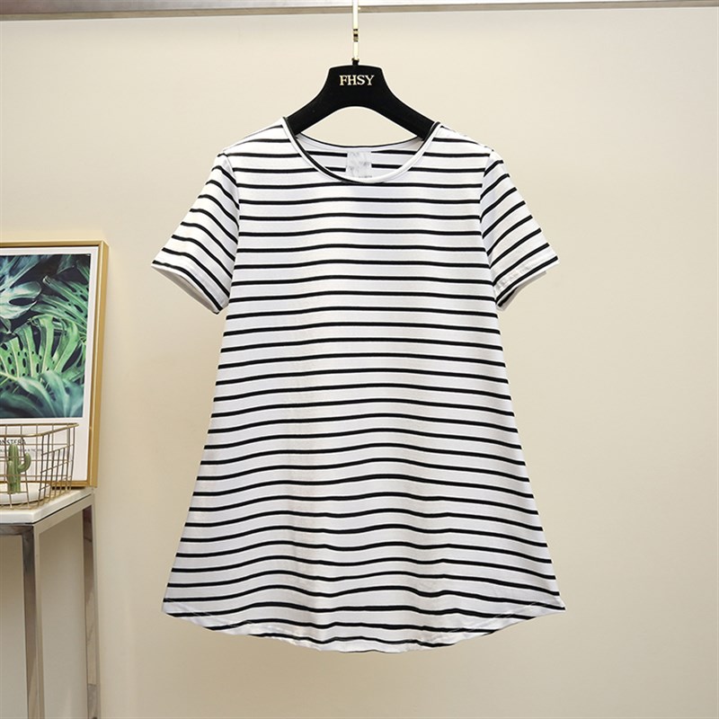 孕妇装时尚T恤202p3夏季新款纯棉条纹拼接中长款宽松大码上衣夏装