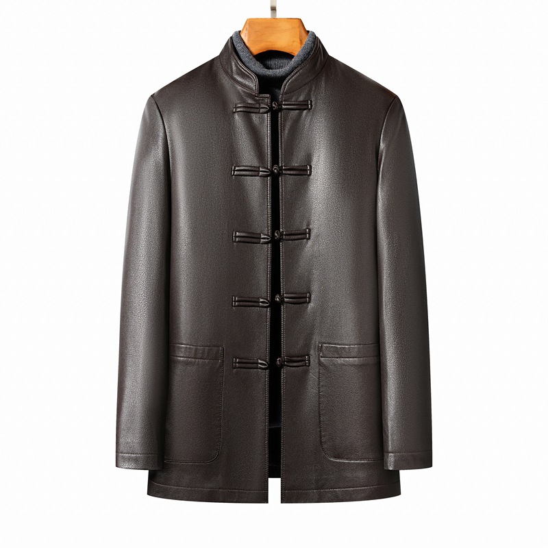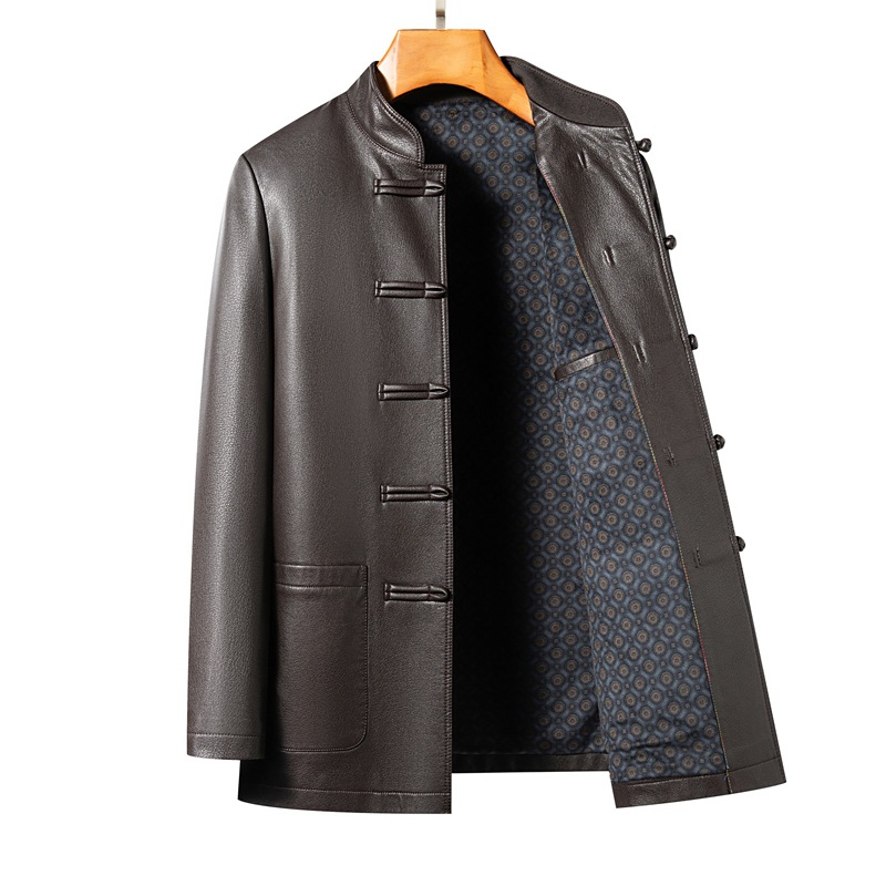 日本品质海宁真皮皮衣男绵羊皮立领唐装皮夹克中国风复古中老年爸