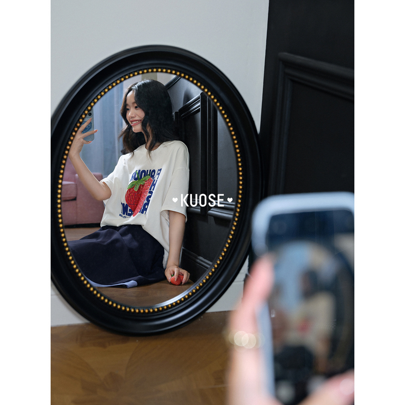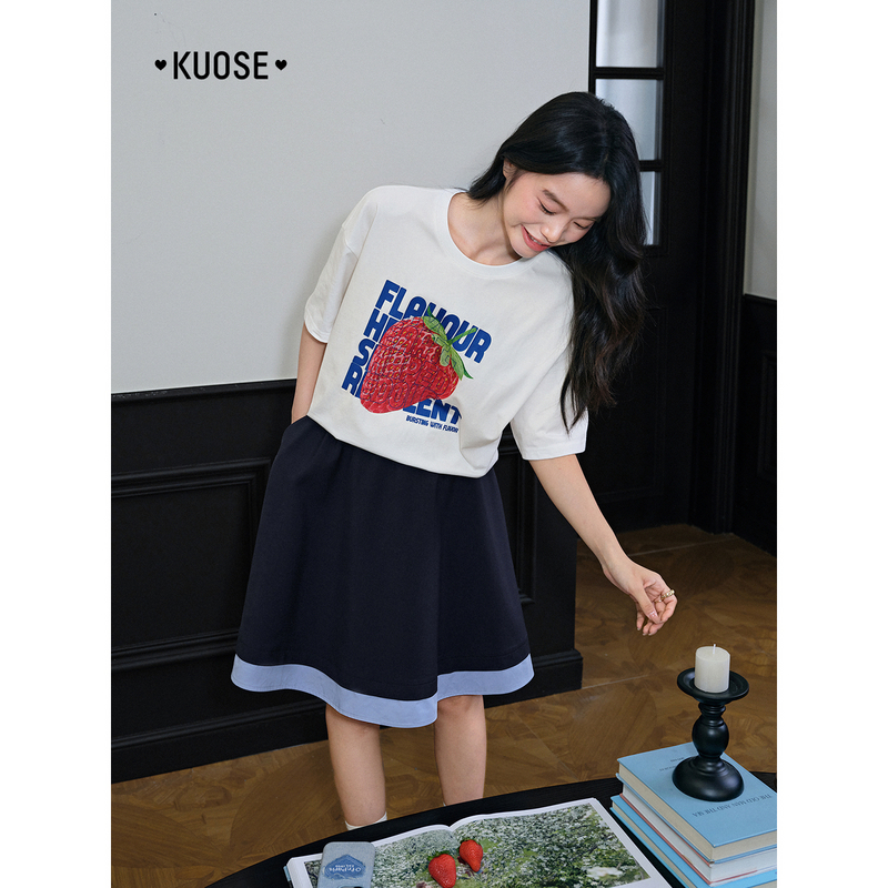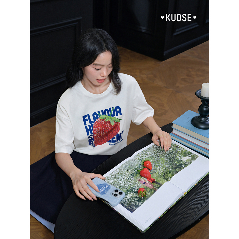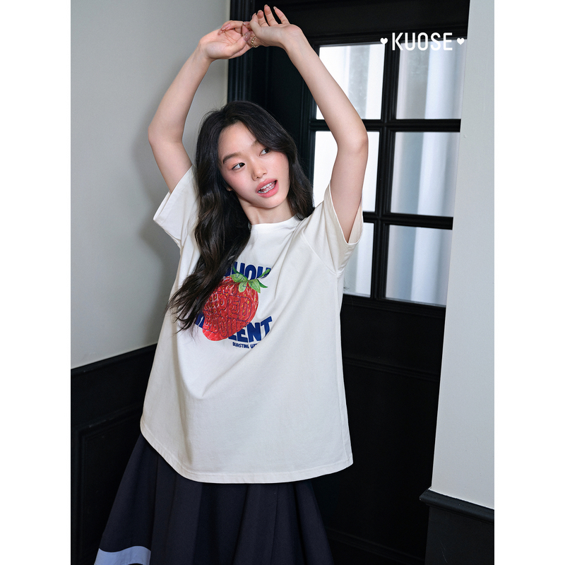 阔色草莓字母印花白色上衣半袖女2025秋季新款宽松休闲短袖t恤夏