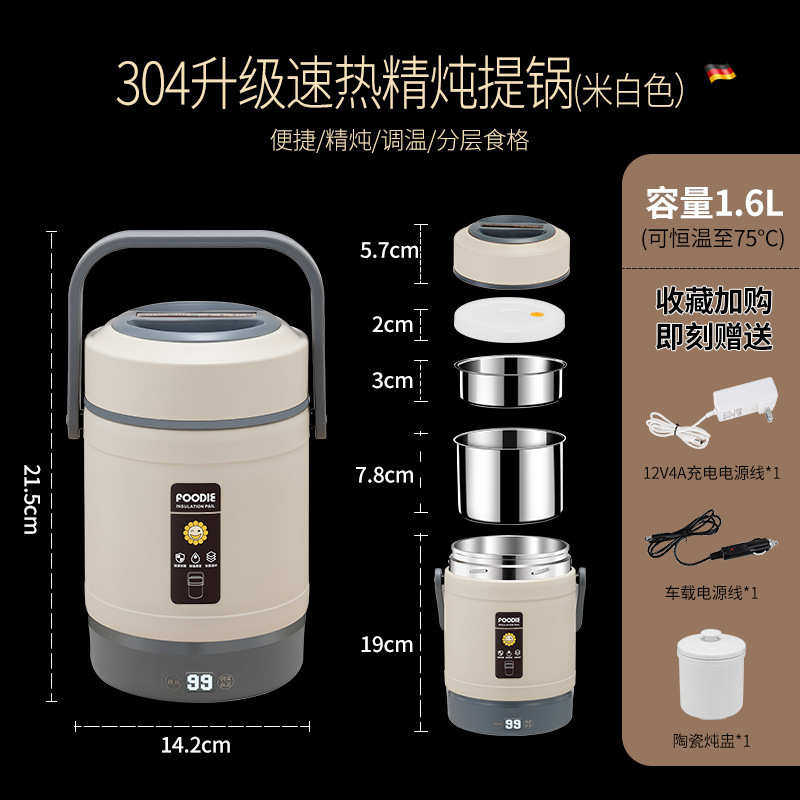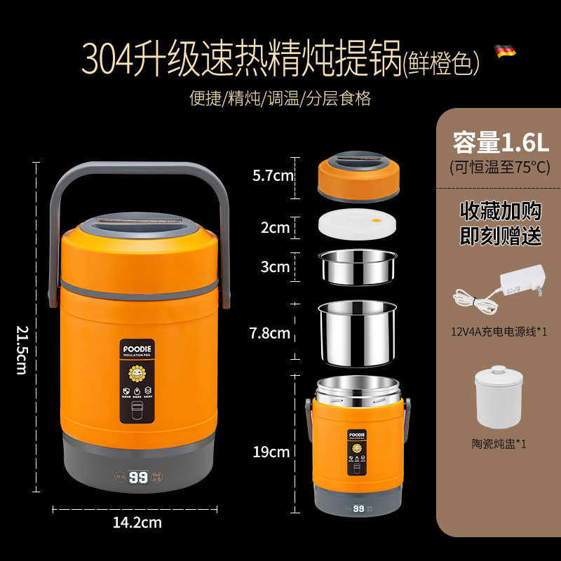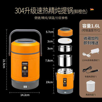 插餐盒饭盒便当可不锈钢保温桶电加热超长保温便携上班族车载kbq1