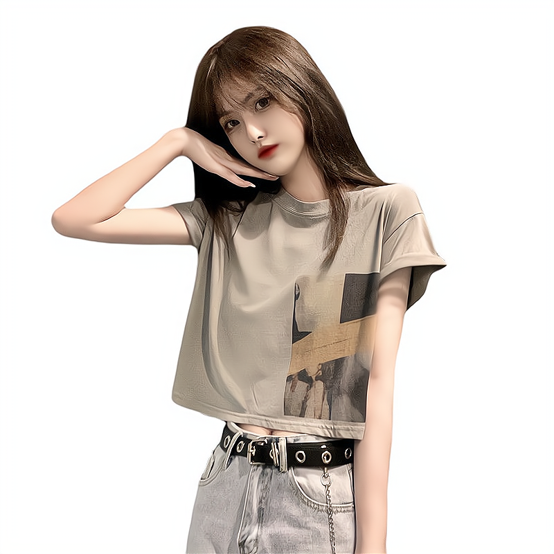 印花短袖短款女t恤女2024年新款夏宽松短t韩版短袖高腰露脐上衣女