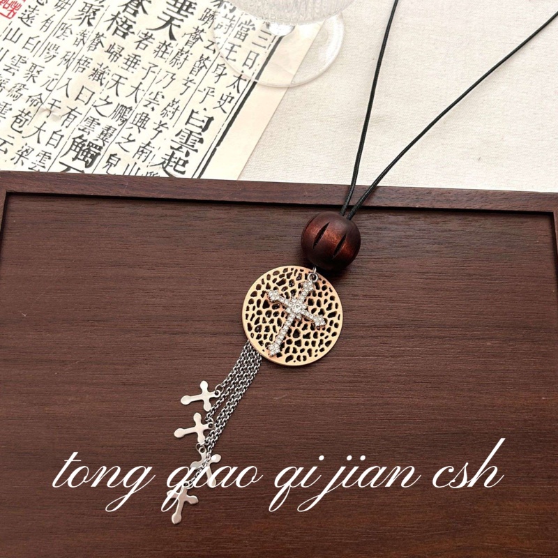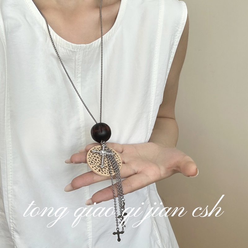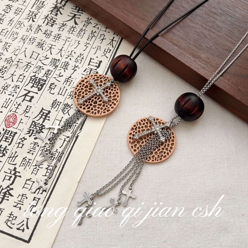 新中式复古闪钻十字架招财项链女民族风小众设计高级感长款毛衣链