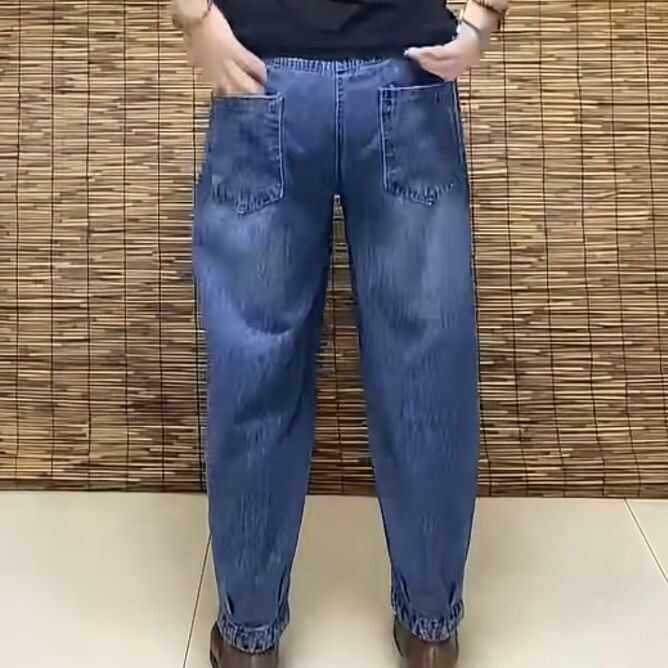 复古秋季大码盘扣牛仔哈伦裤新款