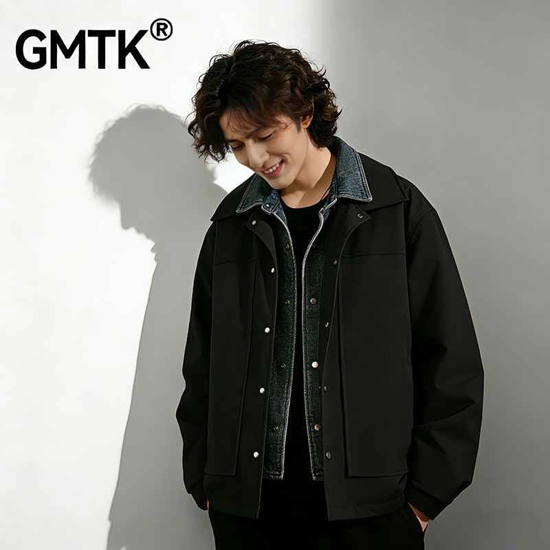 GMTK 美式假两件衬衫领羽绒服保暖潮牌学生街头男女时尚百搭外套