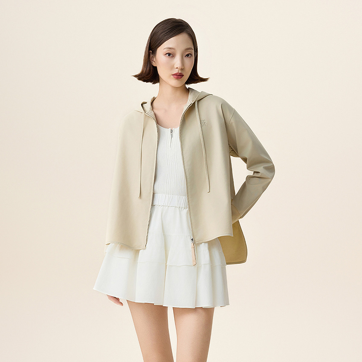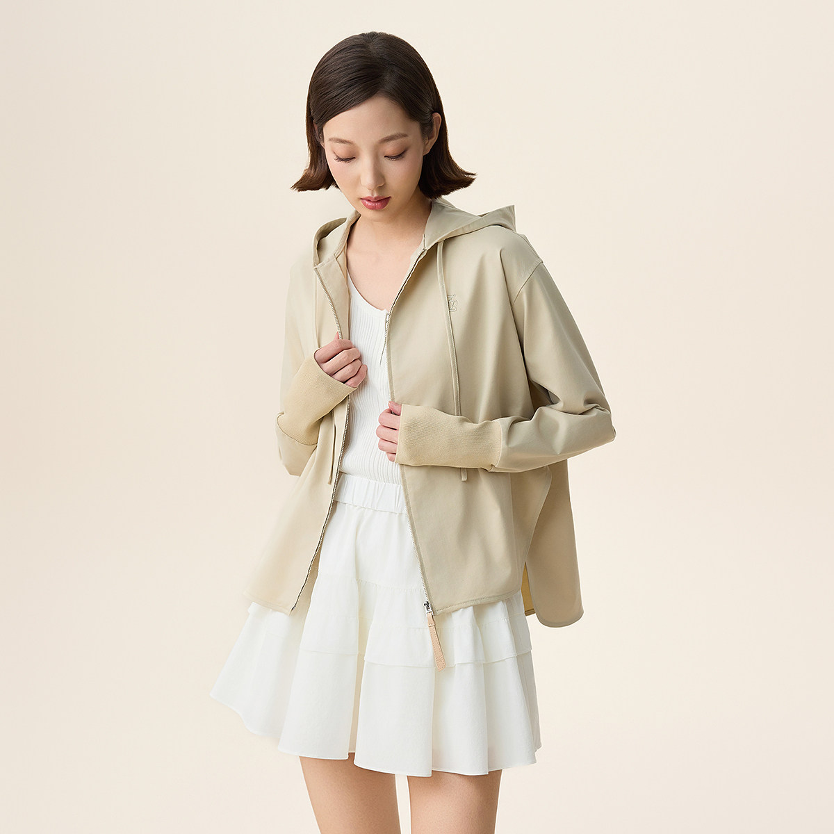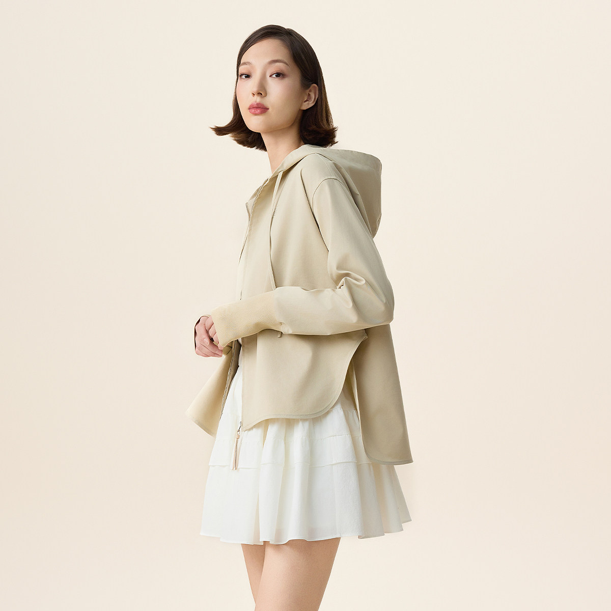 FIVE PLUS高级感连帽风衣外套女休闲宽松短款夹克2026新款女春装