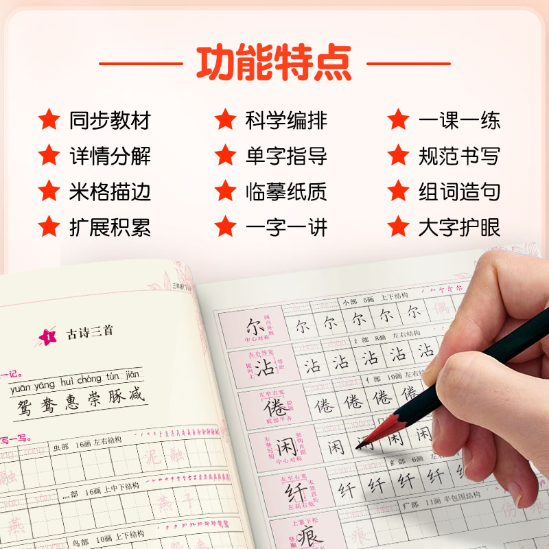 名校课堂一笔好字语文小学生练字帖一二三年级四五六上下册同步课本英语练字本人教版临摹描红专用硬笔每日一练笔顺笔画书法字帖