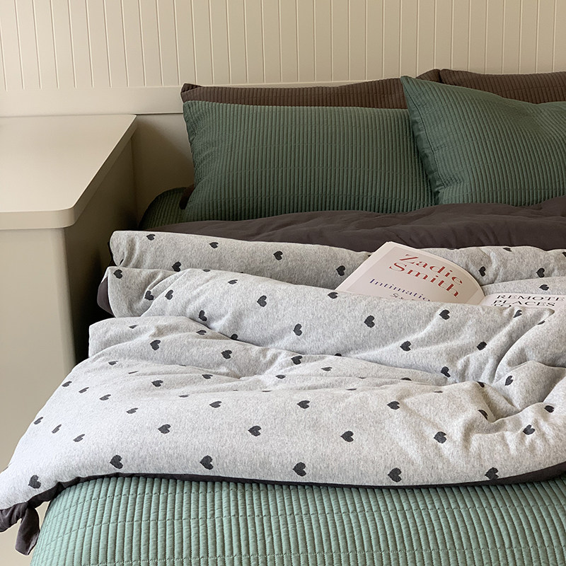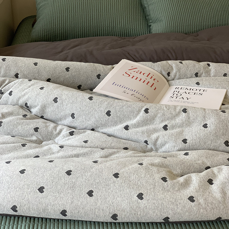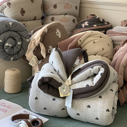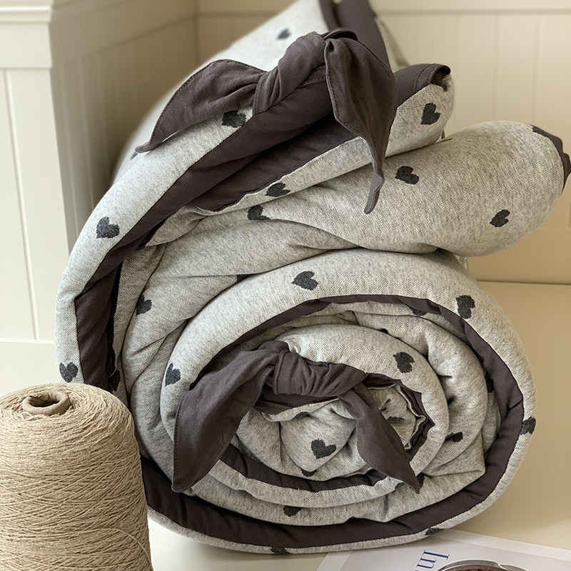 ins爱心加厚针织全棉提花春秋被子韩国大鹅柔软裸睡四季空调被芯