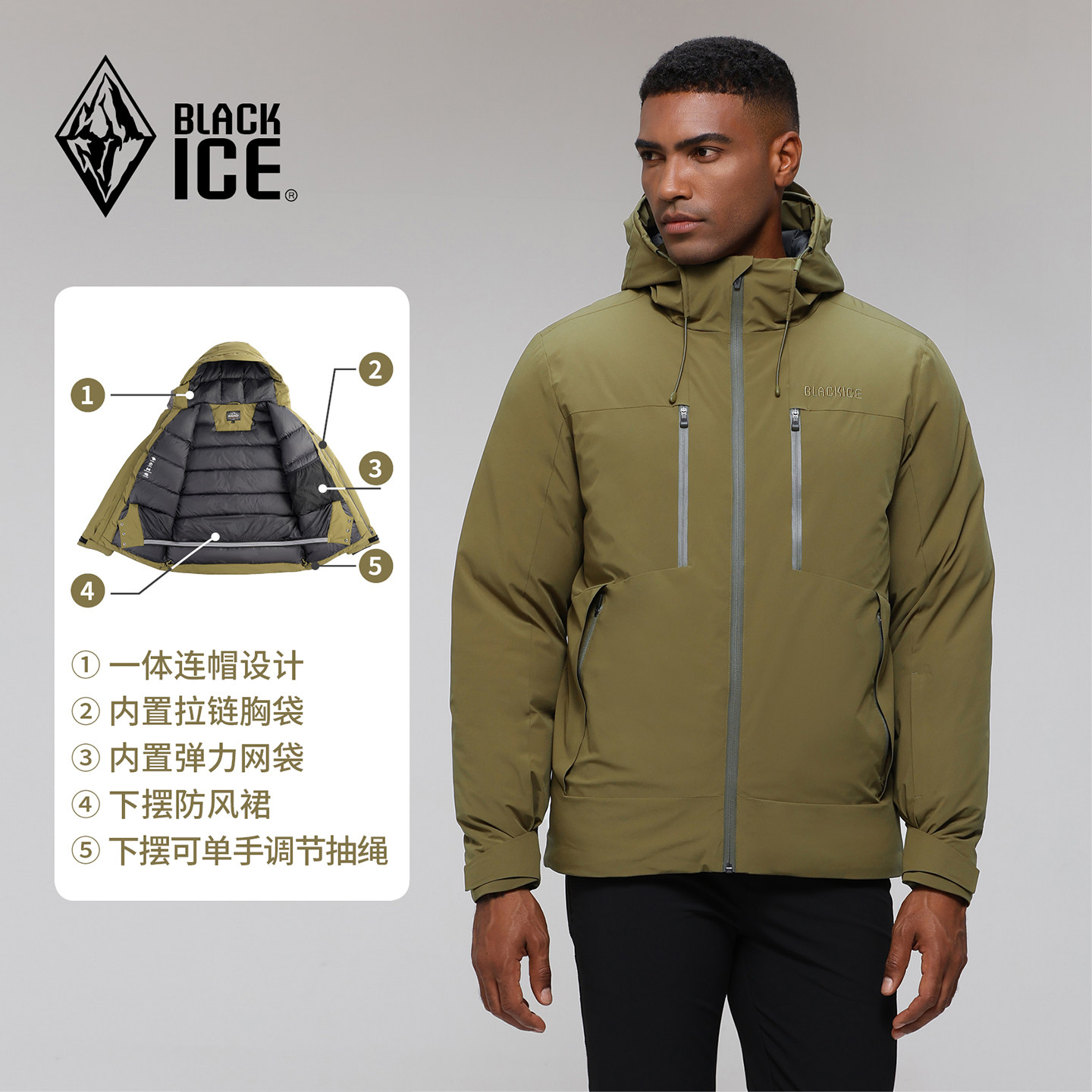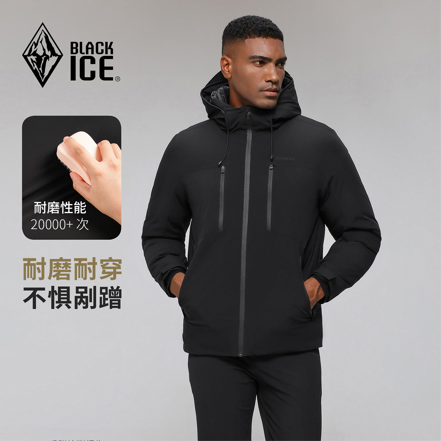 黑冰户外休闲防风保暖鹅绒800蓬连帽羽绒服男款8572