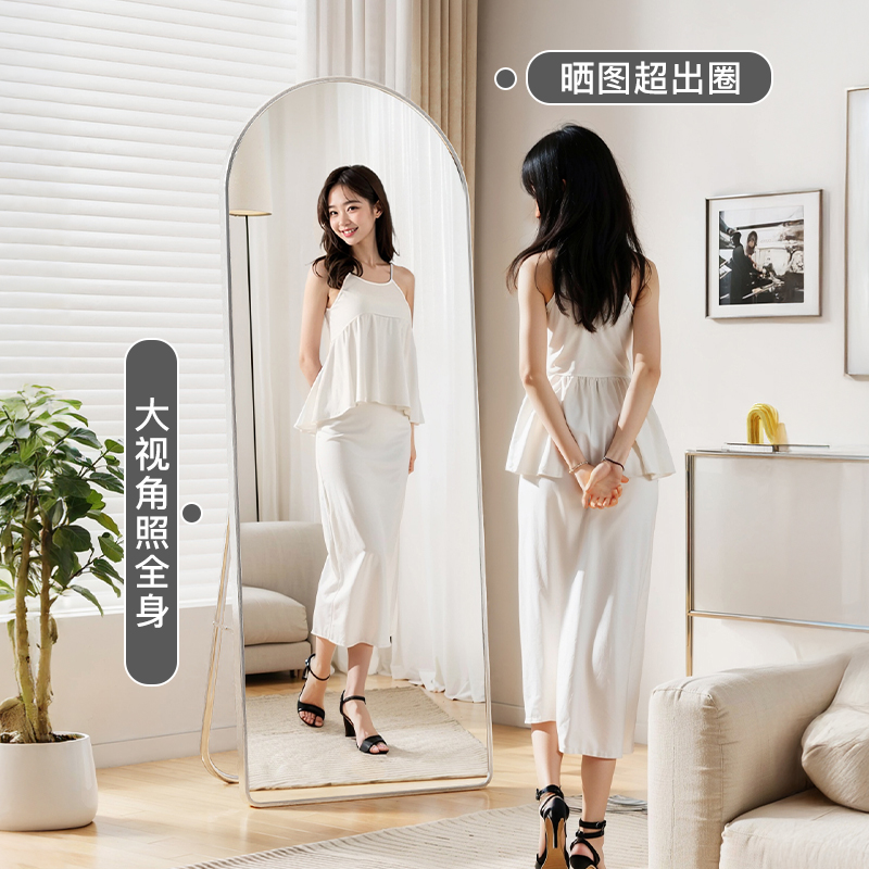 奶油风全身镜落地镜家用女生卧室壁挂网红高级感挂墙试衣镜穿衣镜