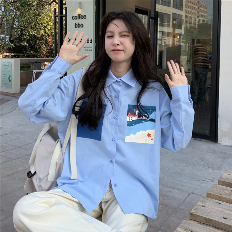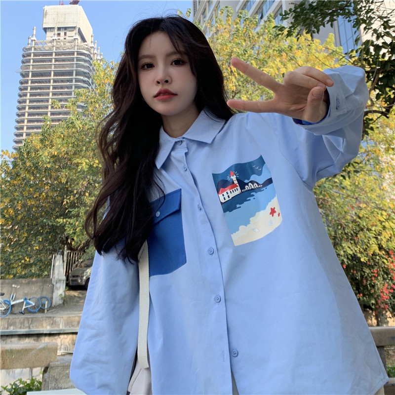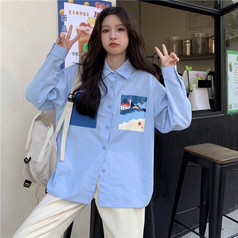 日系衬衫女秋季复古港味设计感小众法式高级别致长袖方领上衣外套
