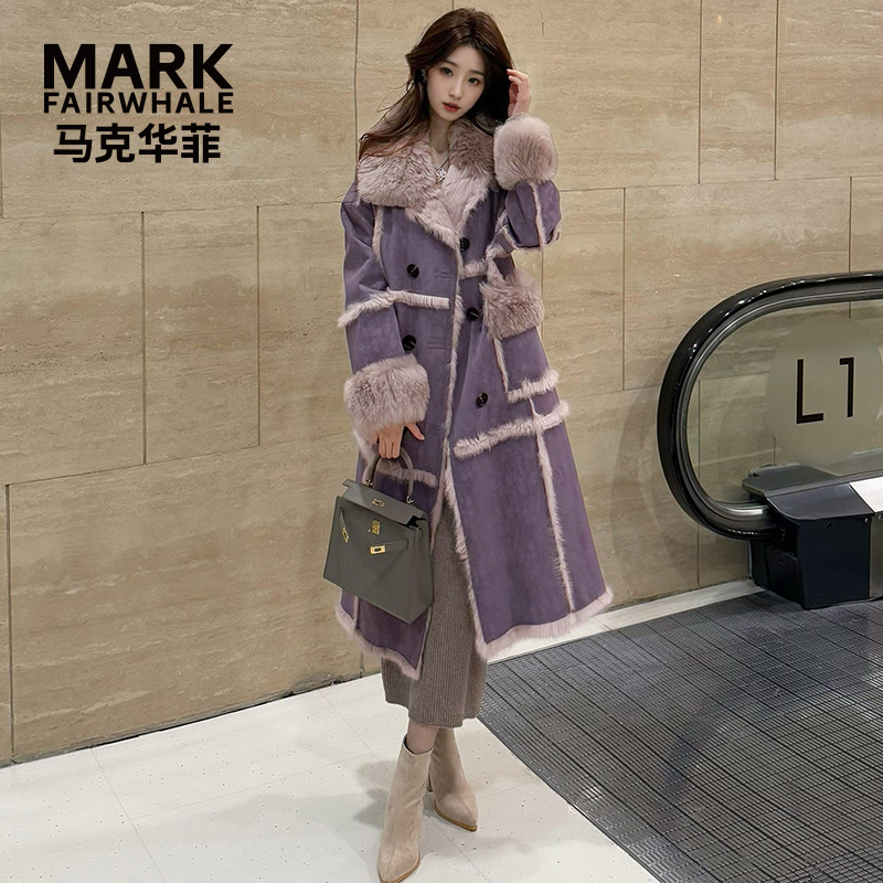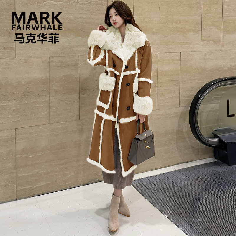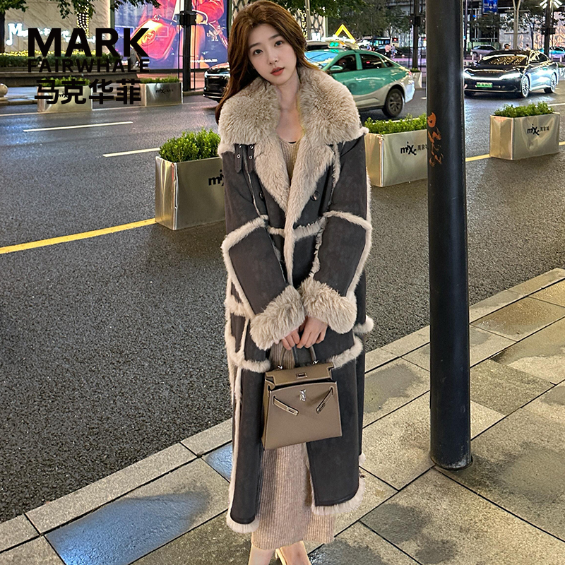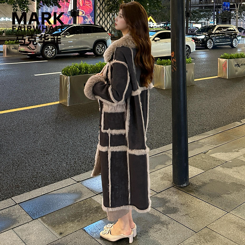 马克华菲女装轻奢仿皮草大牌欧美风高街时尚中长款大衣女式外套