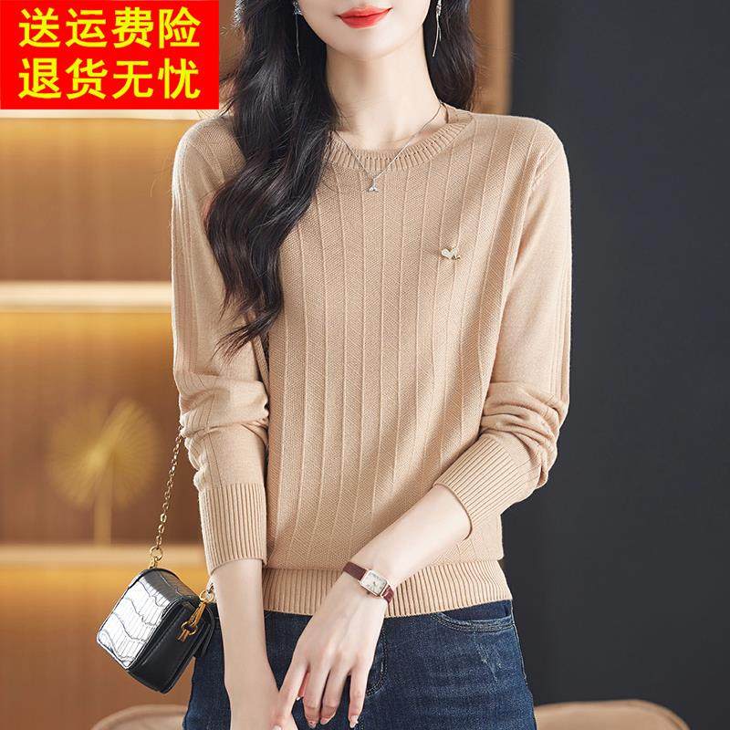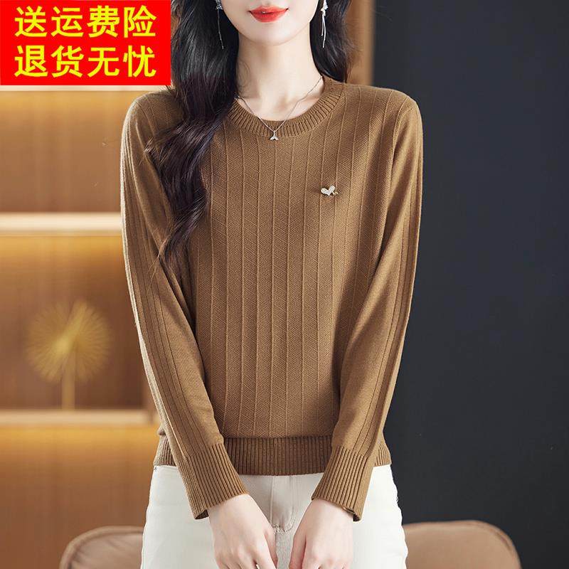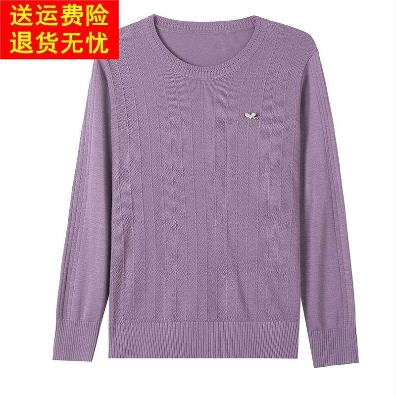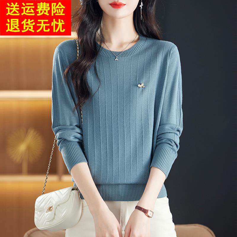 鄂尔多斯市妈妈装桑蚕丝长袖t恤女外穿针织上衣早秋季新款打底衫