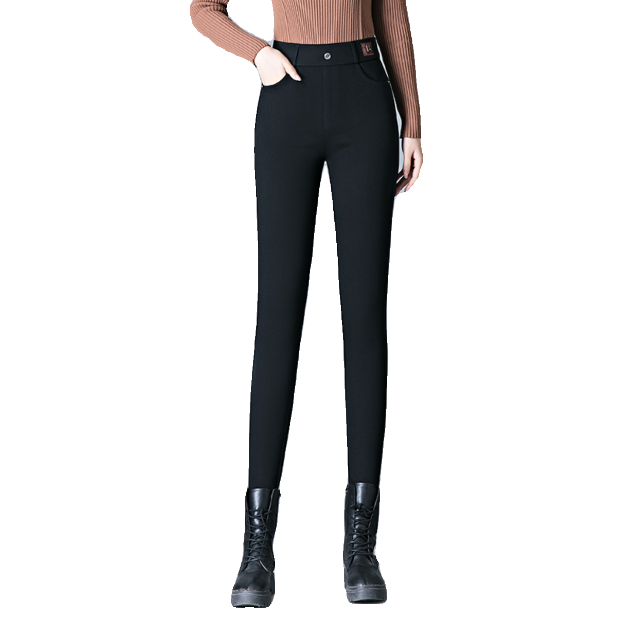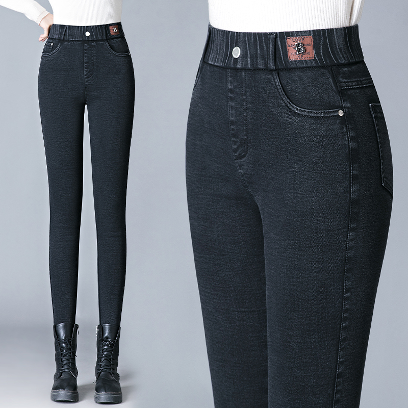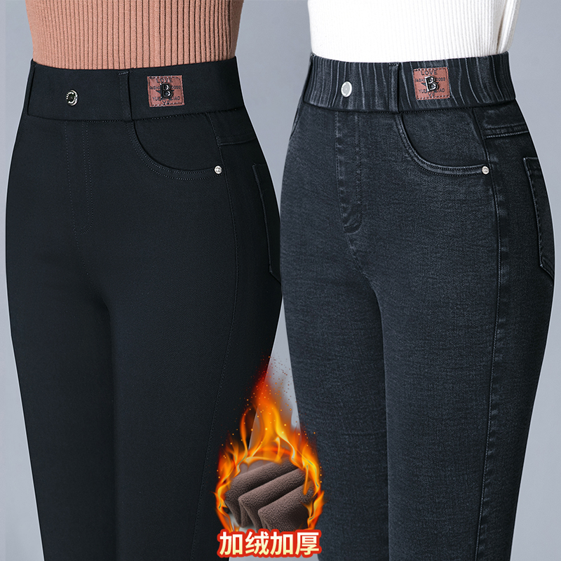 加绒黑色牛仔裤女2025冬季新款高腰修身显瘦弹力紧身小脚铅笔加厚