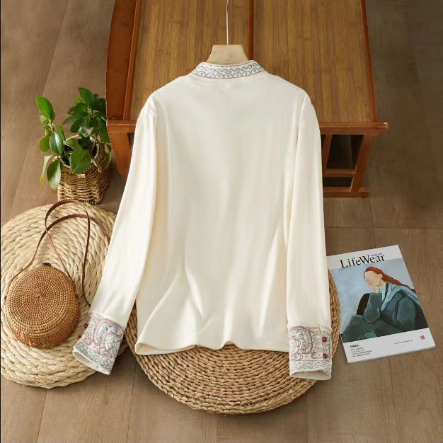 宽松上衣女装慵懒风大码2025秋冬复古休闲保暖T恤立领长袖打底衫