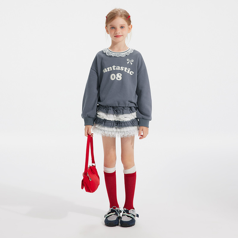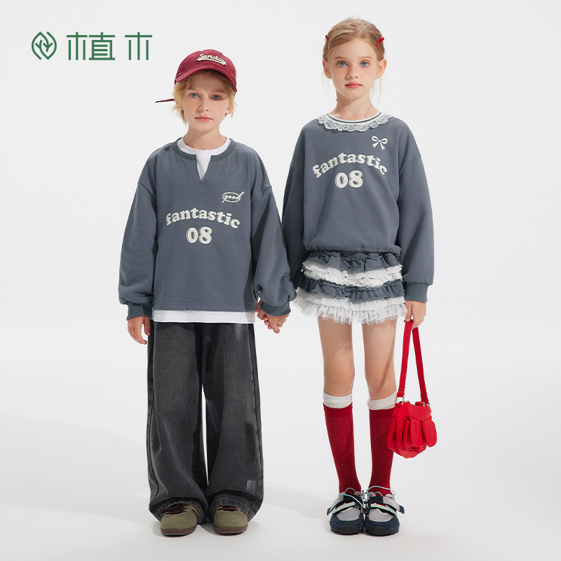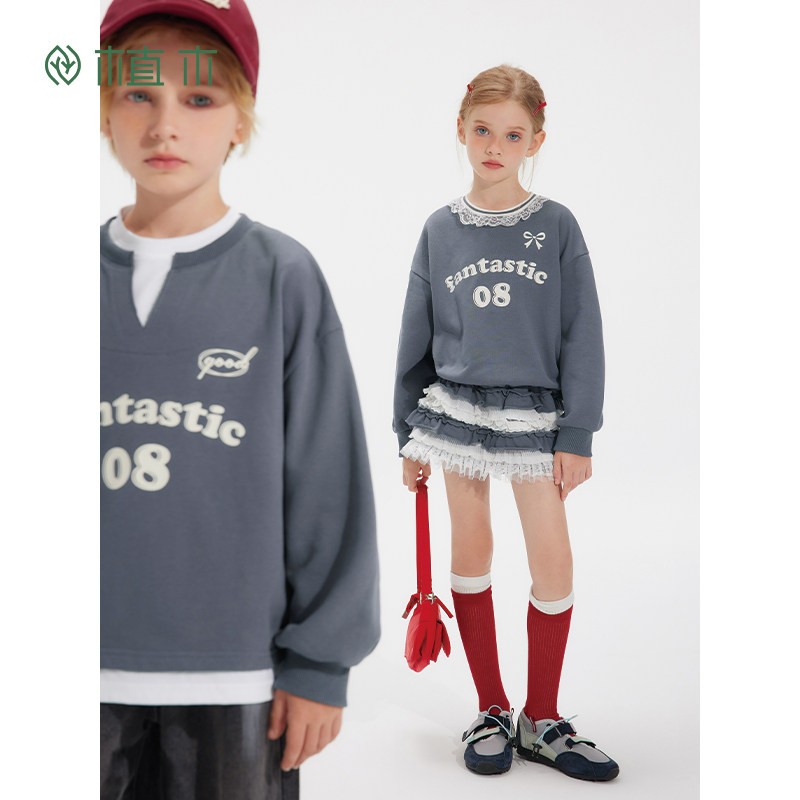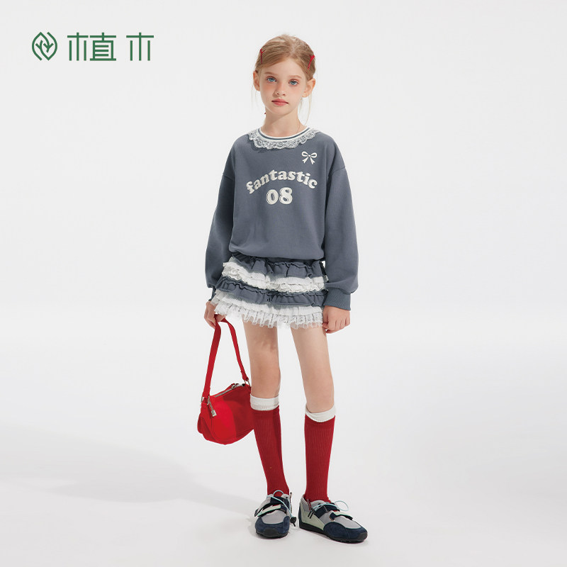 植木童装女童套装2025秋冬新款中大童圆领卫衣半裙套装儿童套装