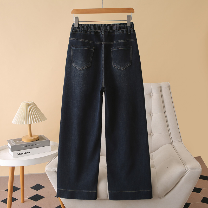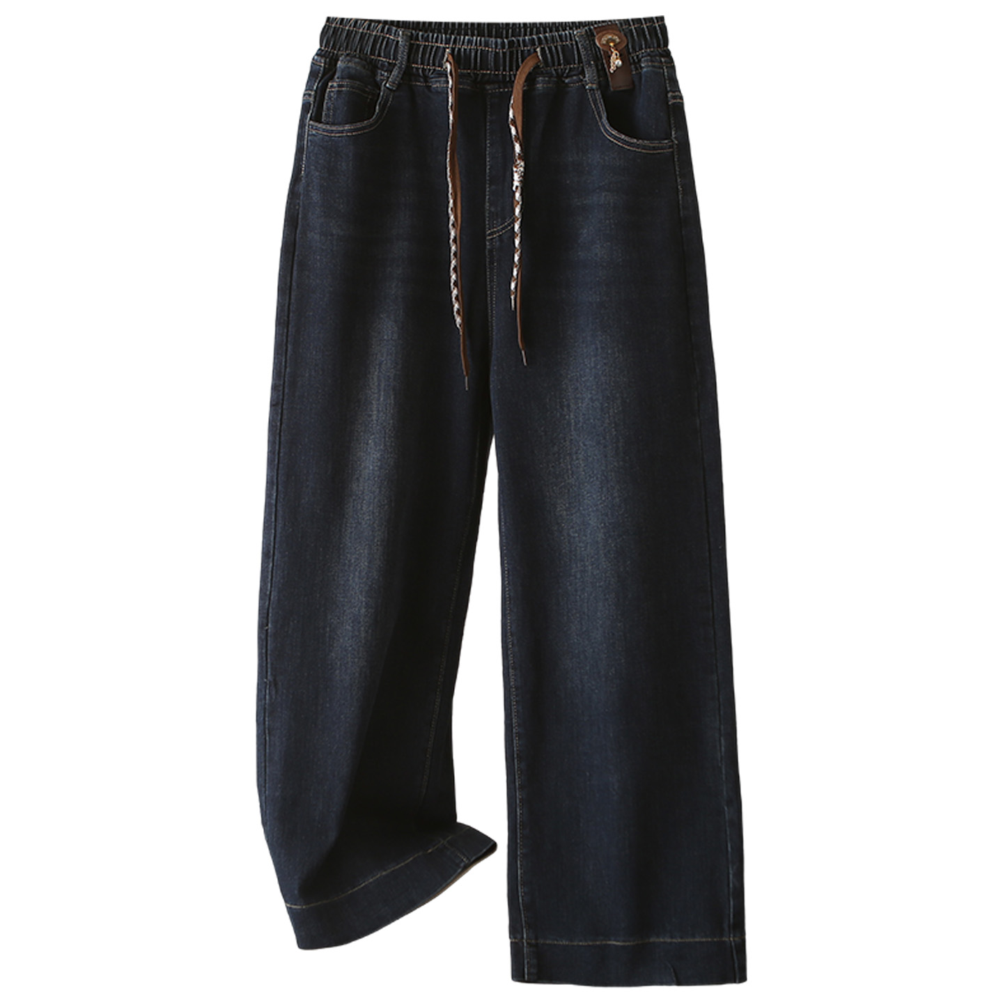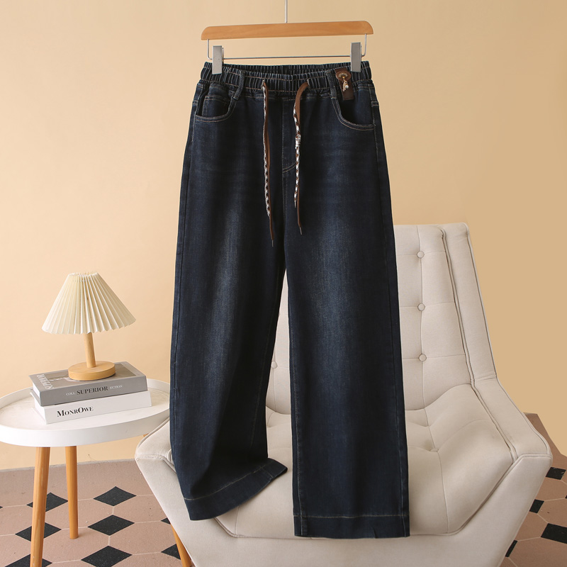 大码彩条系带直筒牛仔裤女2025秋季新款中年妈妈装高档阔腿休闲裤