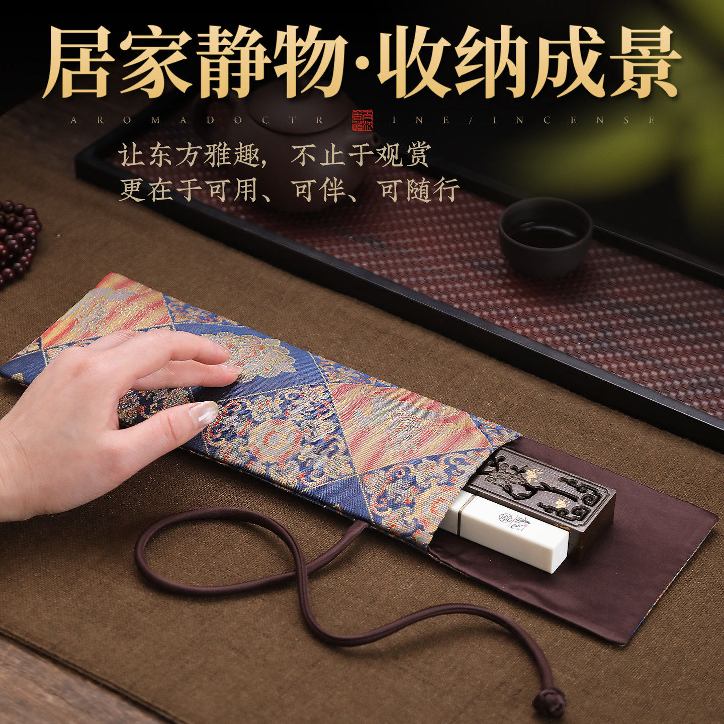 非遗织锦收纳布袋香道工具套装