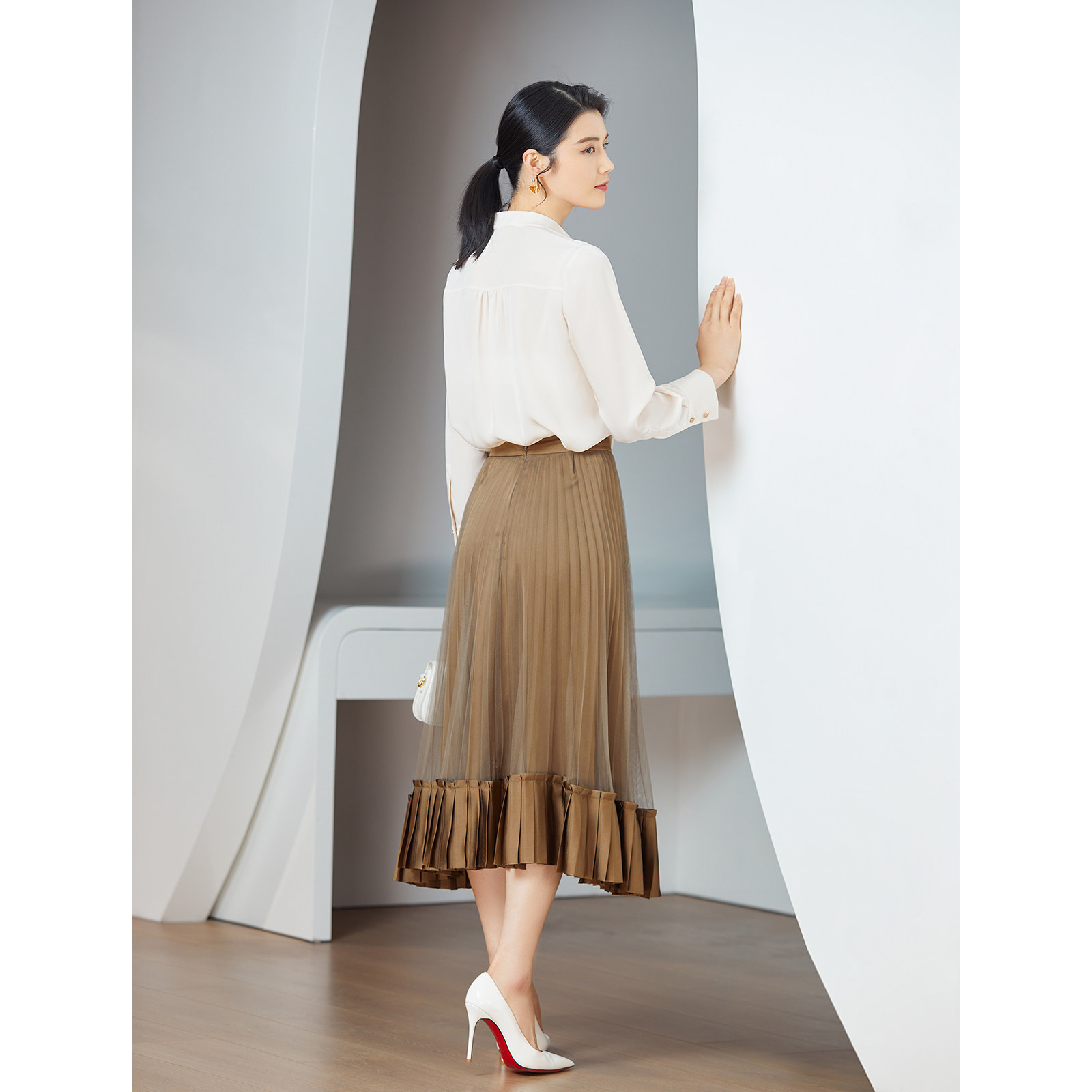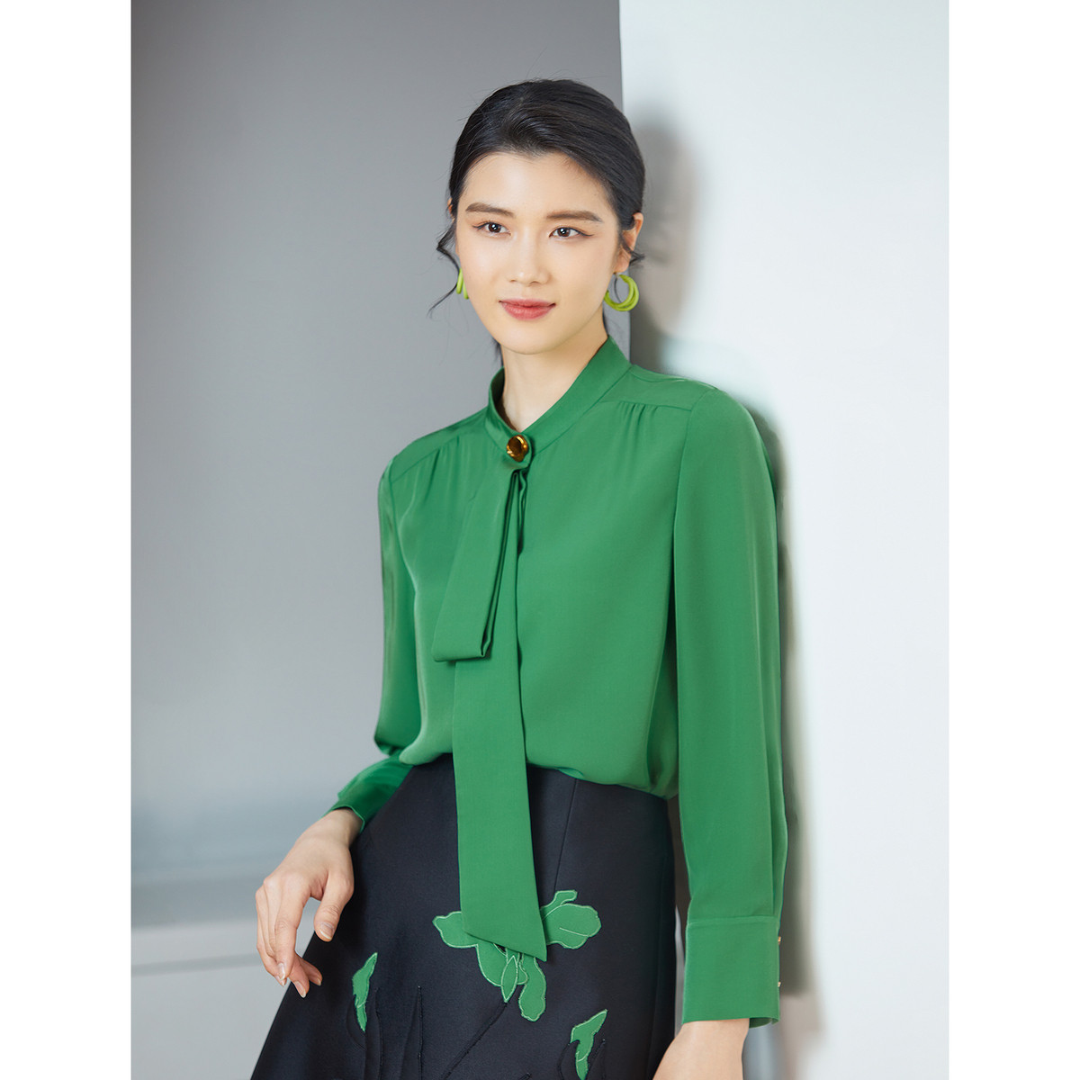 【丝滑缎面】BBLLUUEE/粉蓝衣橱2025春夏装气质飘带领直筒衬衫女