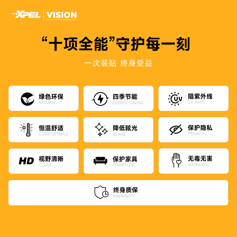 XPEL Vision家居隔热膜窗户防晒玻璃贴膜太阳膜家用阳光房上门