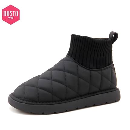 大东雪地靴24冬季新款休闲套脚厚里平底拼接圆头短靴女鞋