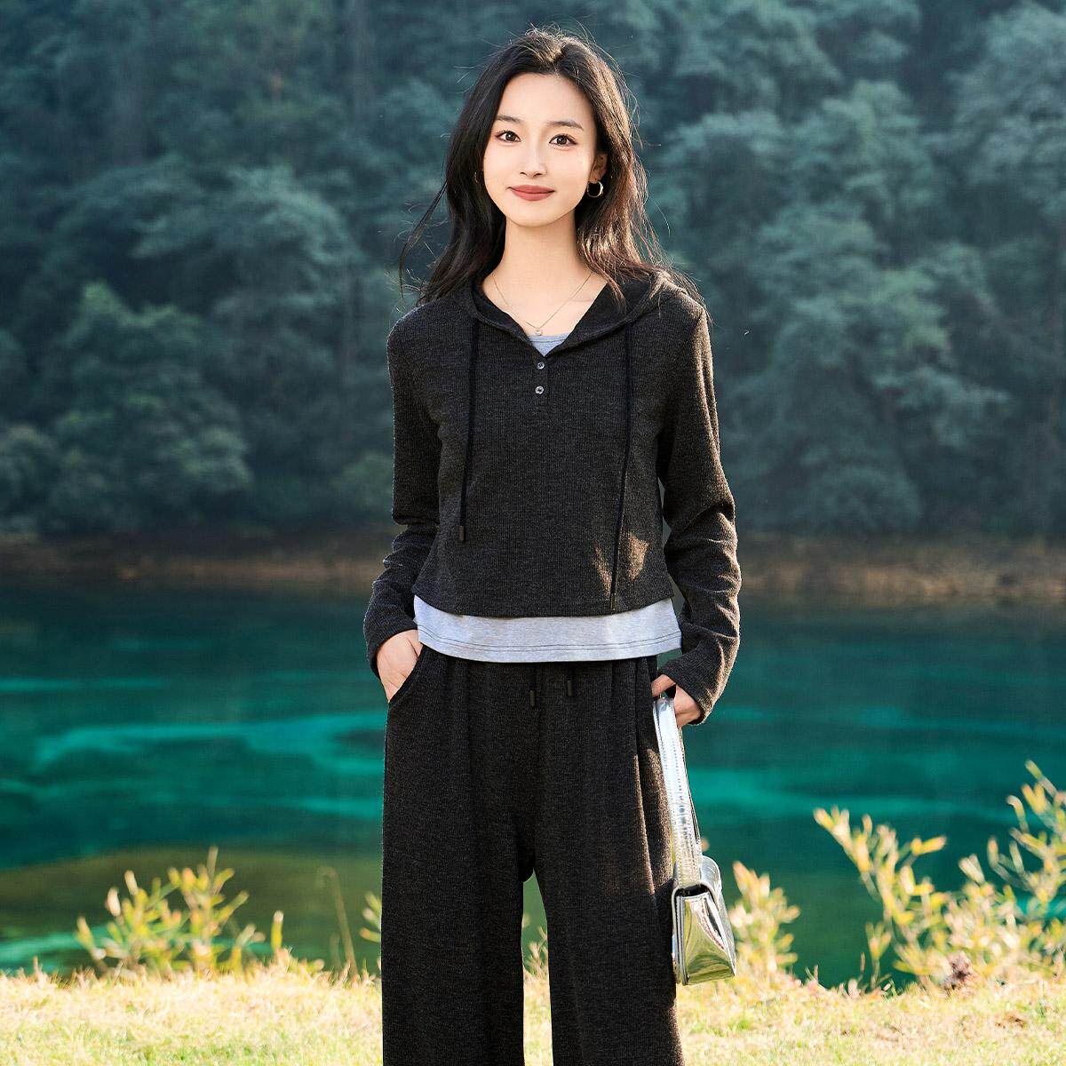 【商场同款】Smen诗萌2026秋季新款连帽卫衣休闲运动两件套套装女
