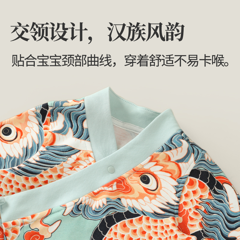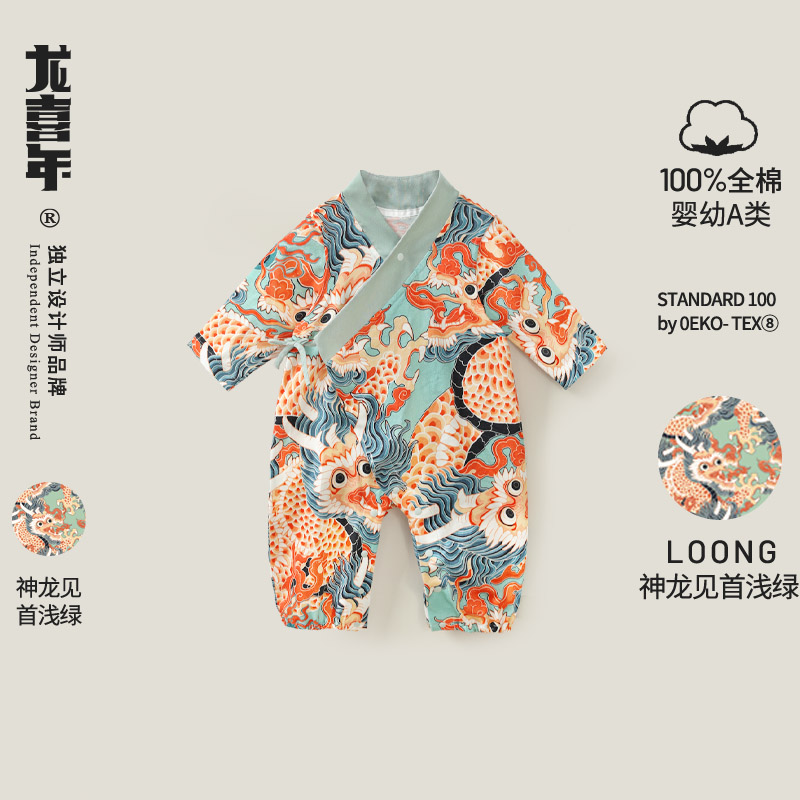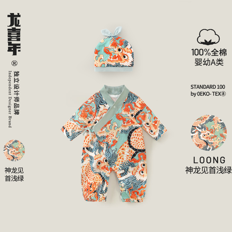 龙喜年宝宝满月衣服男中式国风婴儿百天百岁宴周岁礼服连体唐装秋