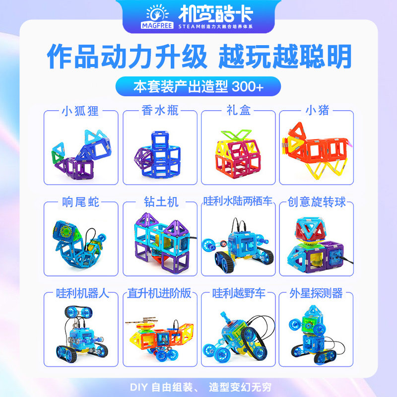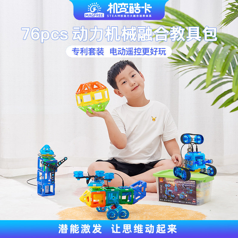 机变酷卡磁力片进阶拼搭电动遥控车 STEAM教具儿童益智拼装76件套