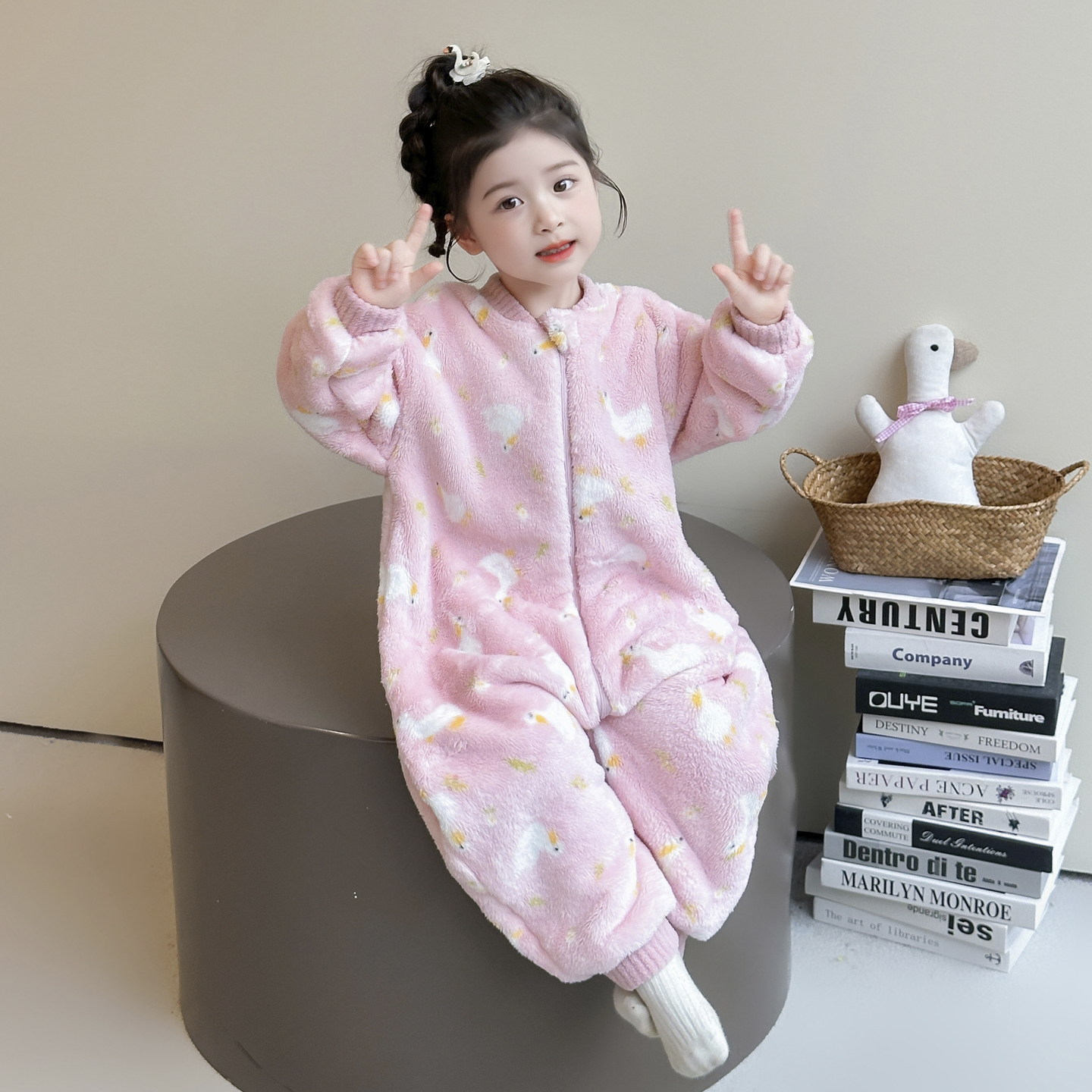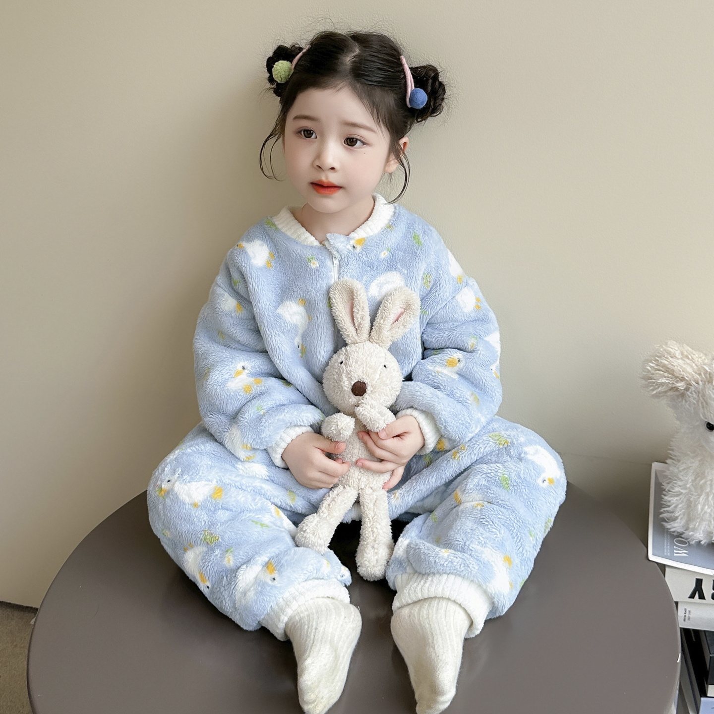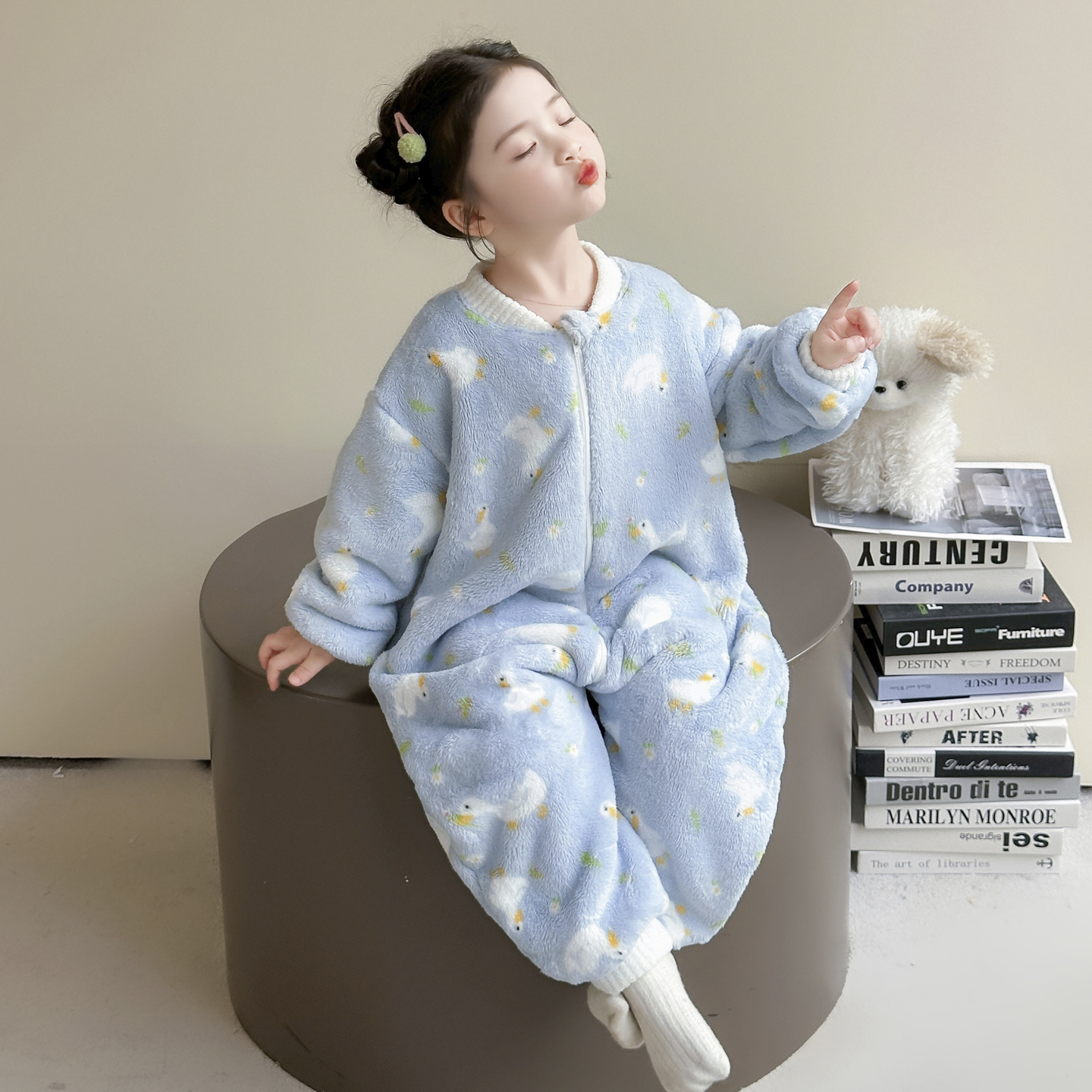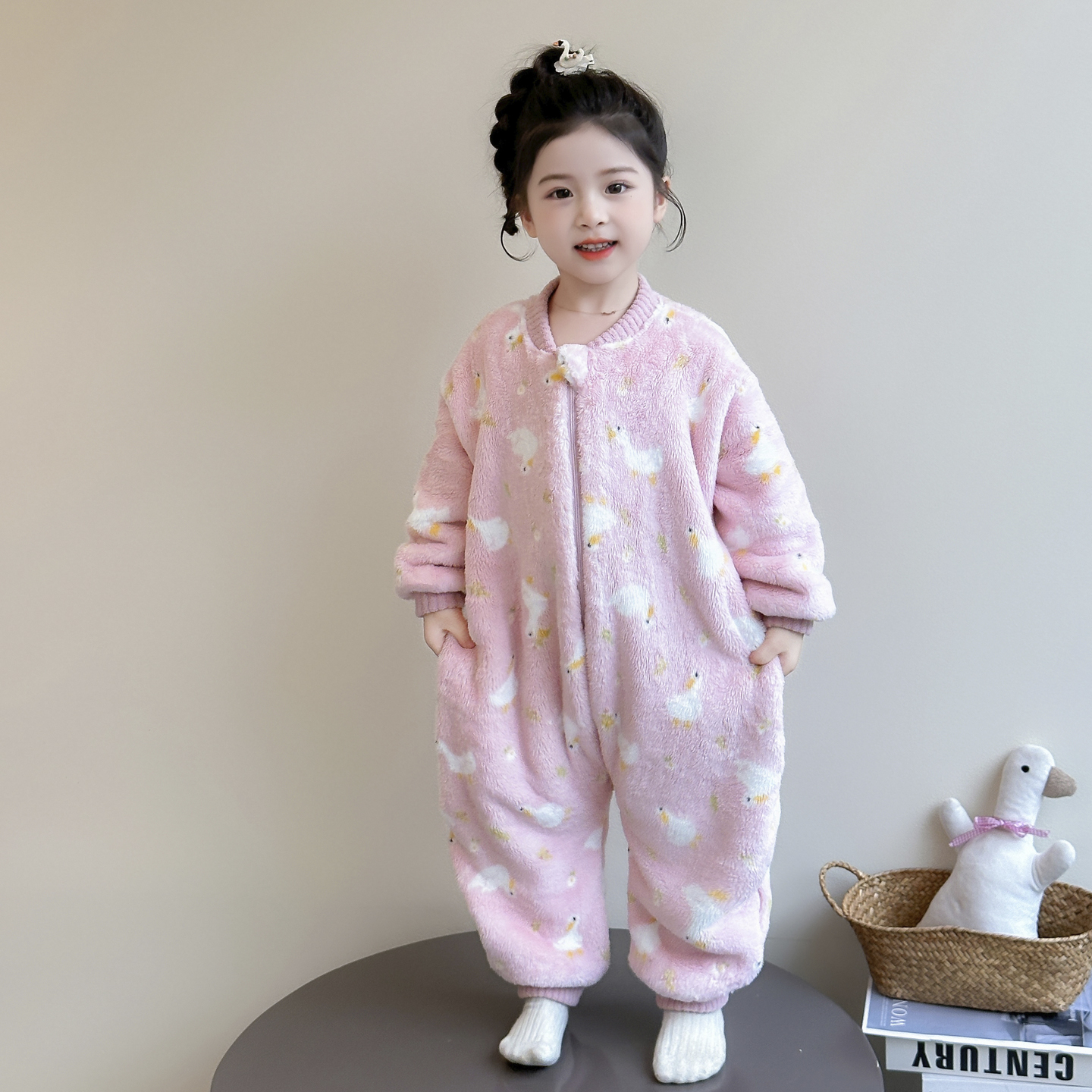 女童睡衣2025新款秋冬法兰绒女宝宝休闲保暖连体家居服睡袋珊瑚绒