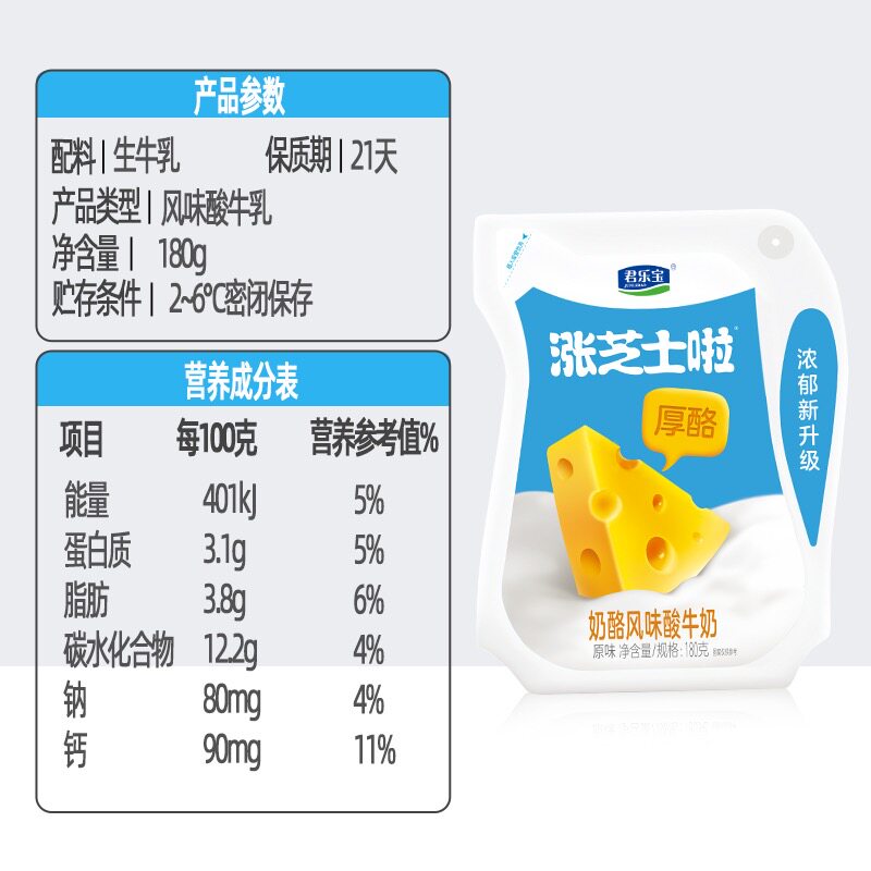 君乐宝涨芝士啦酸奶袋装整箱牛奶