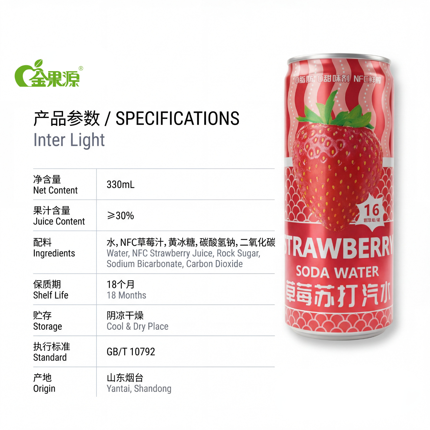金果源 草莓苏打气泡水330mlNFC鲜榨0脂肪清爽饮料果汁气泡水整箱