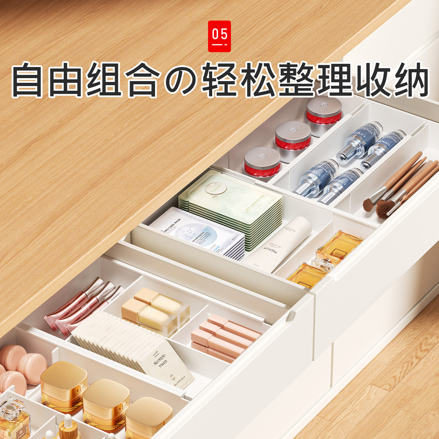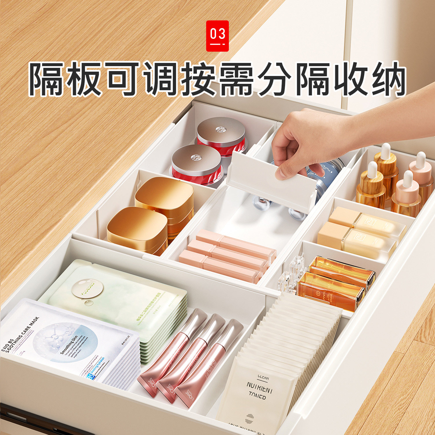日本伸缩抽屉分类收纳盒分隔化妆品整理盒厨房橱柜柜内储物盒神器