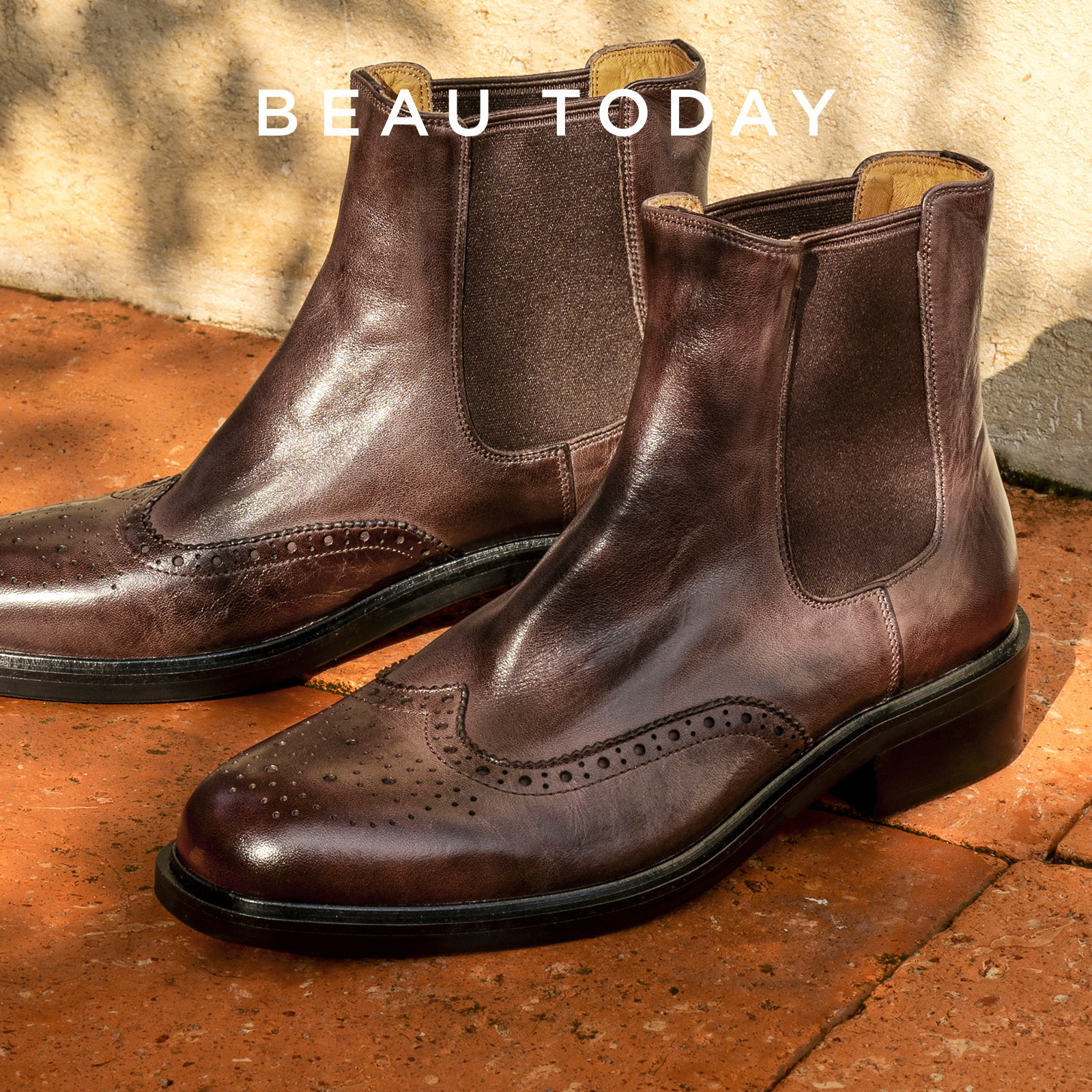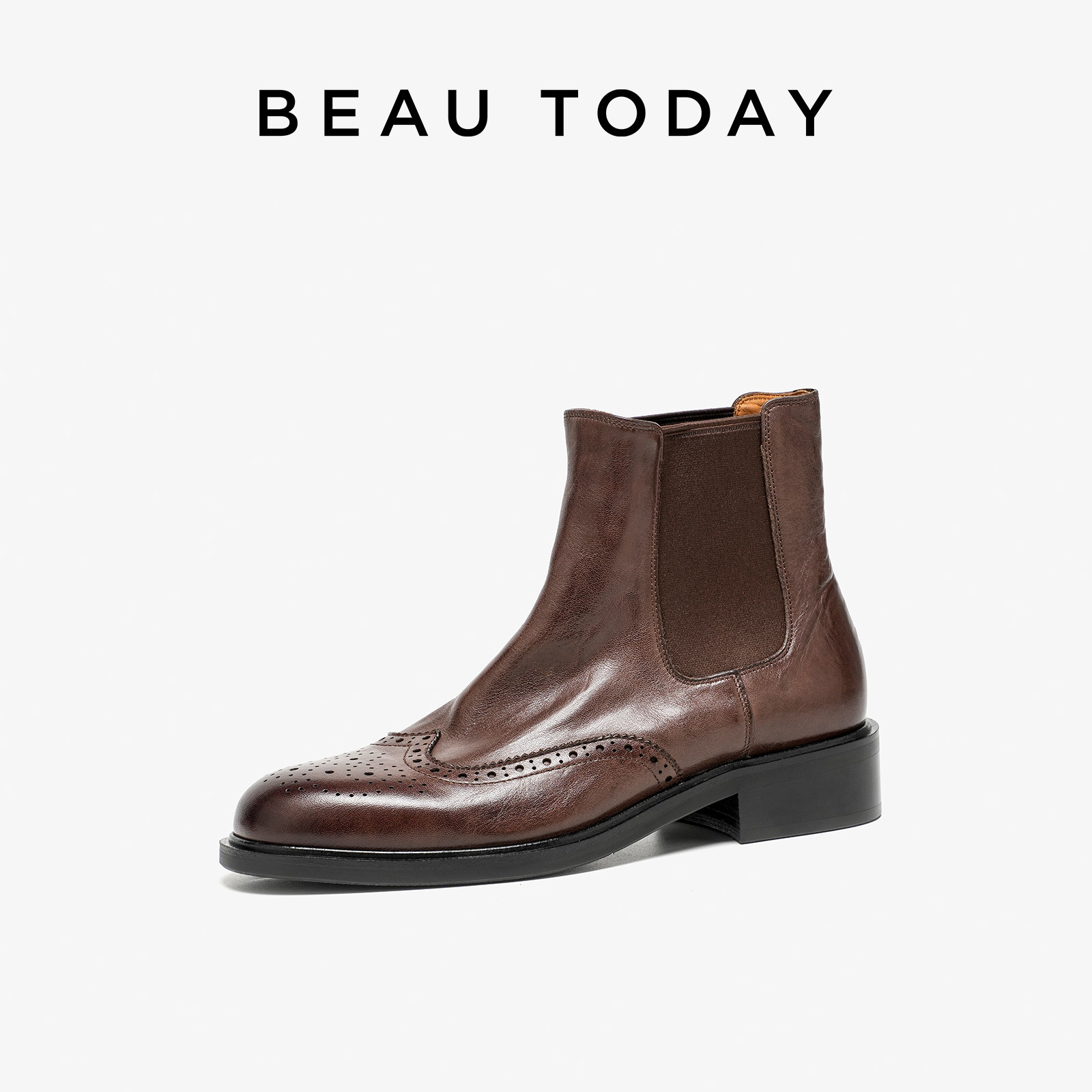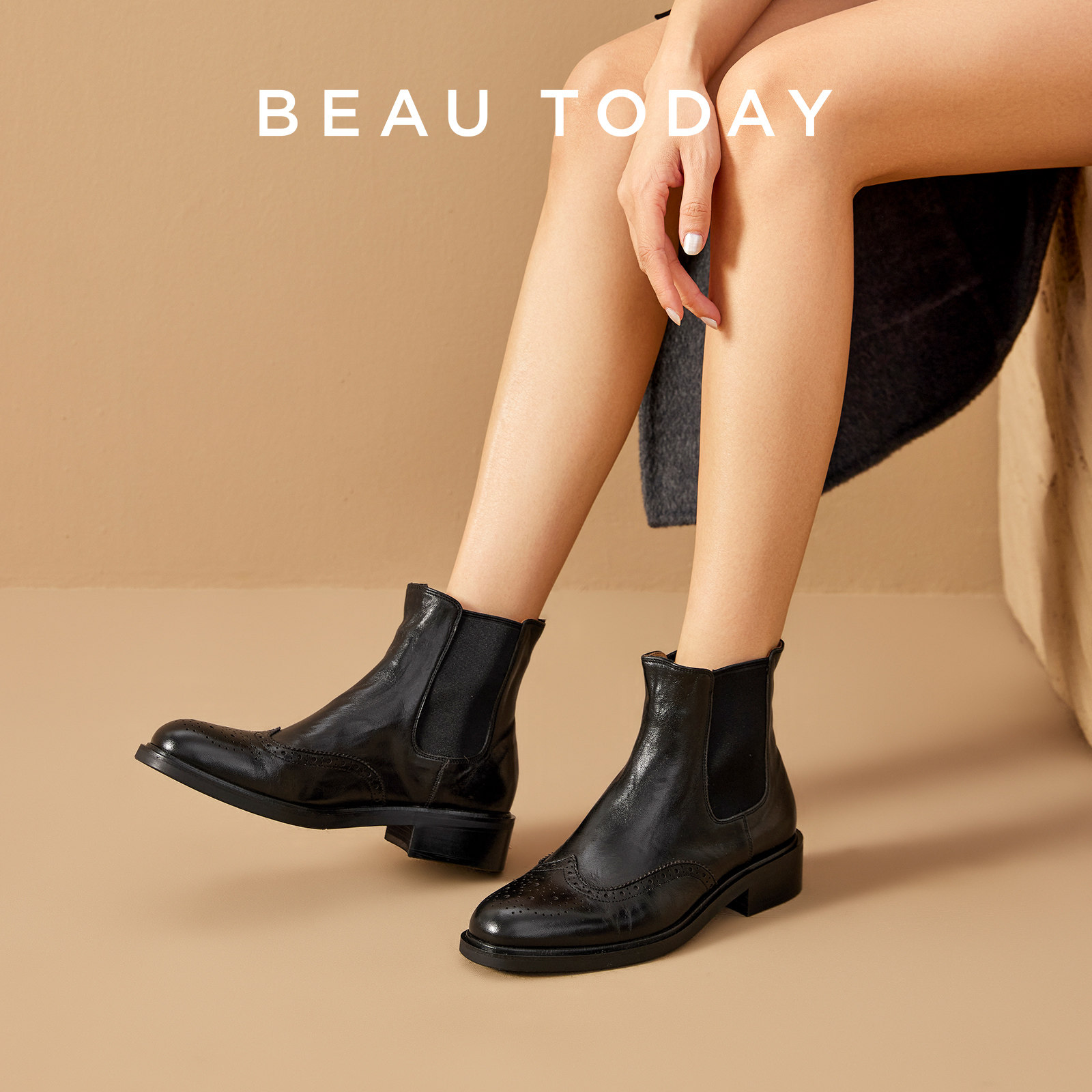 BeauToday切尔西靴女布洛克真皮短靴子女BT美拉德靴子烟筒靴女款