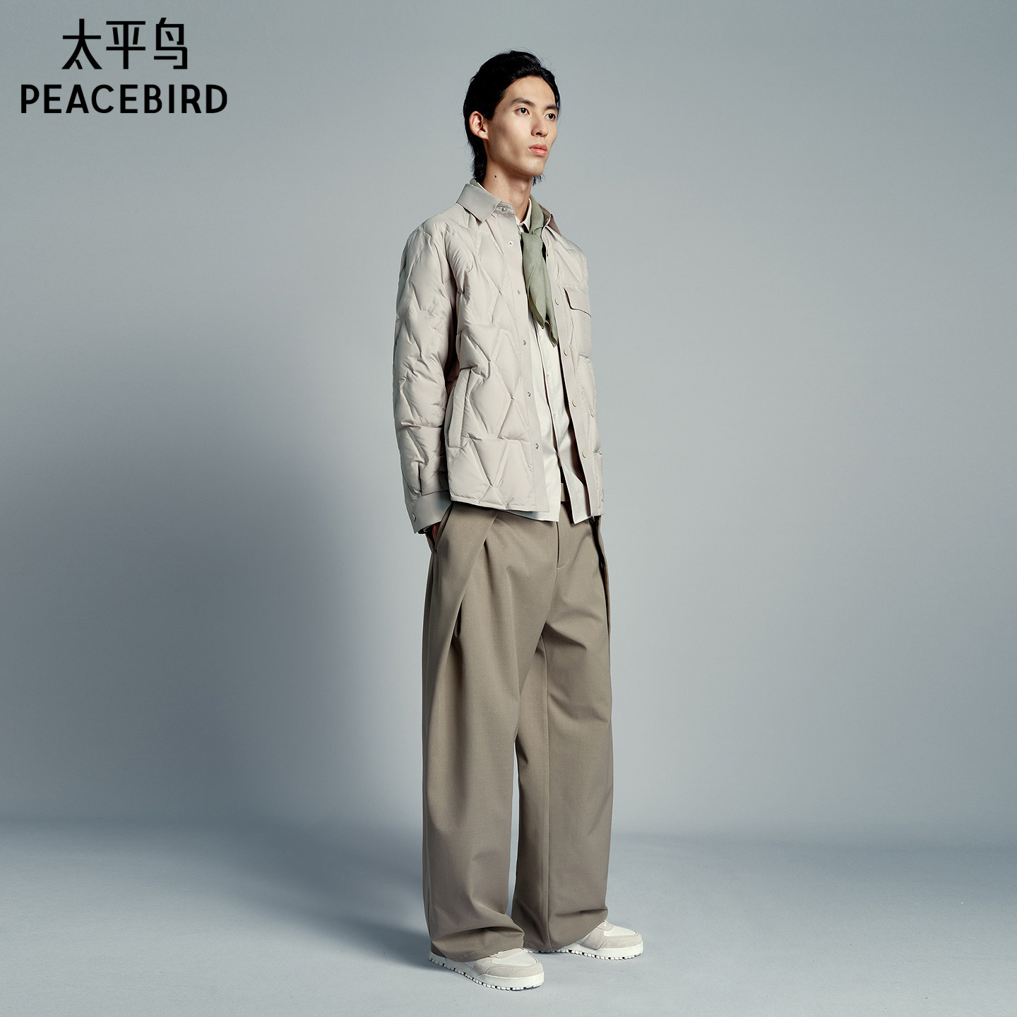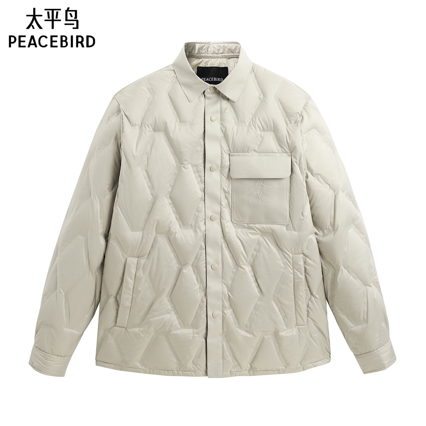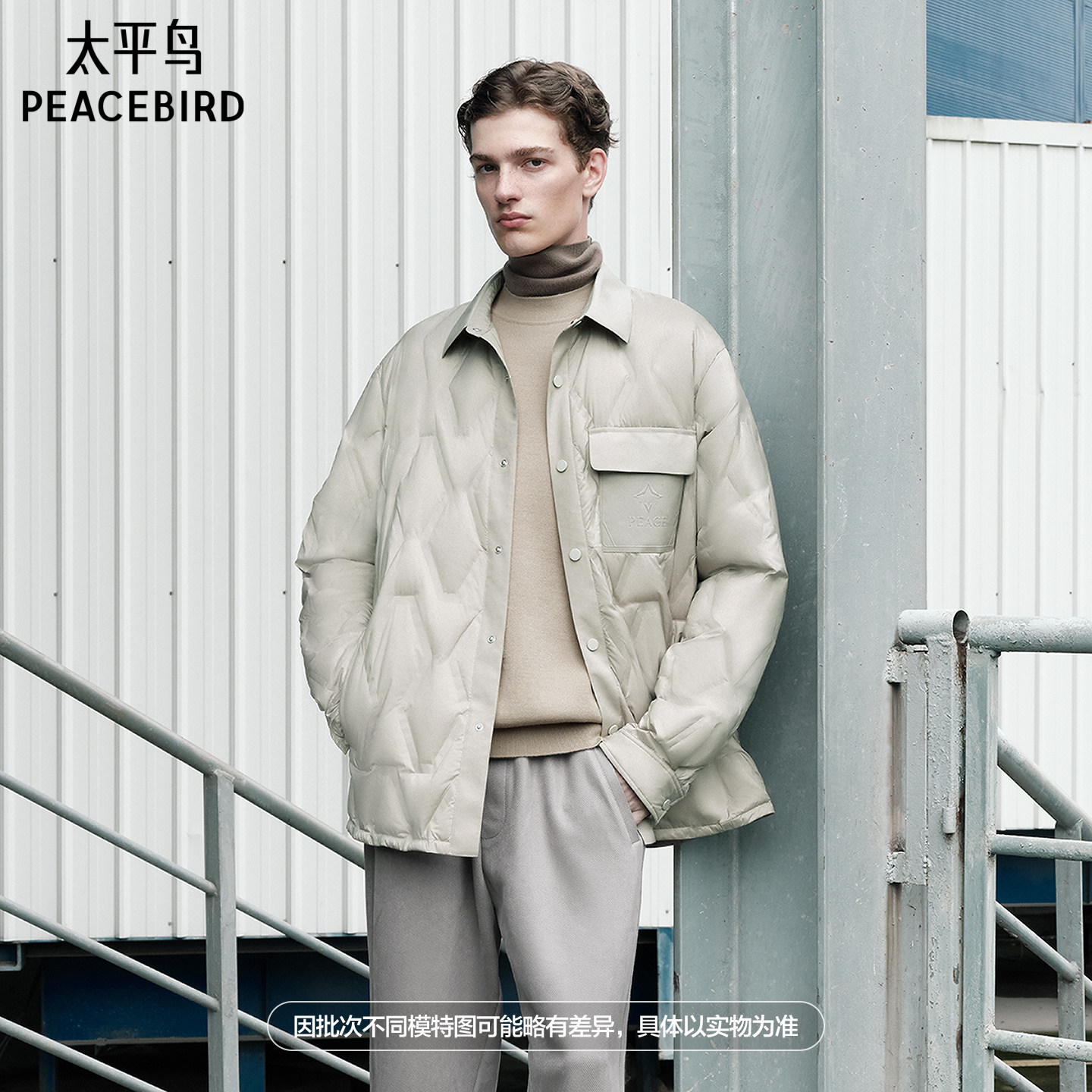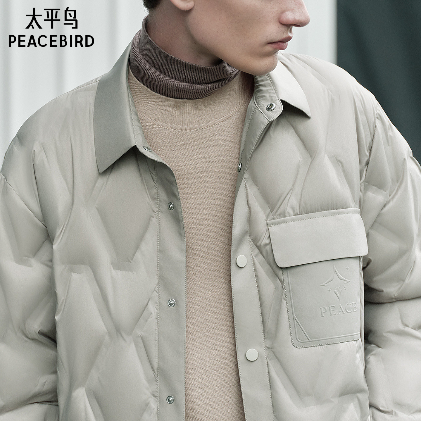太平鸟男装 鹅绒羽绒服男衬衫式保暖口袋外套灰色防寒服男