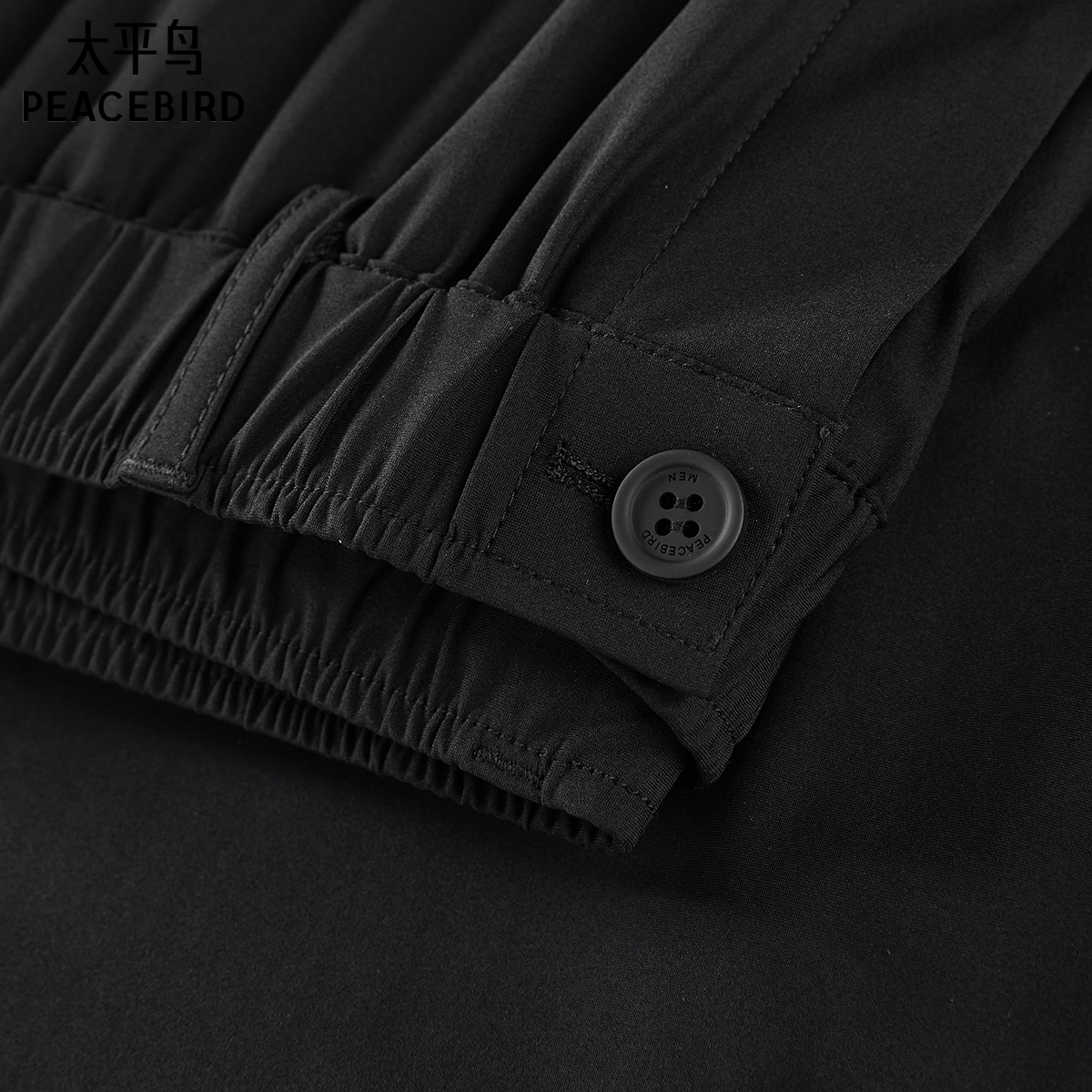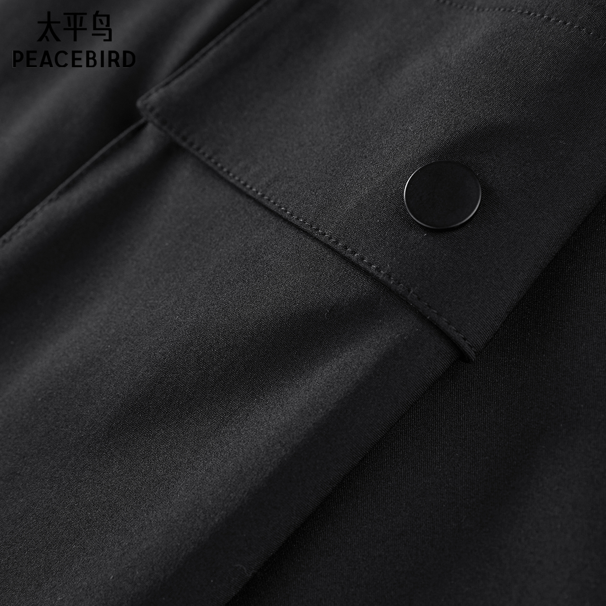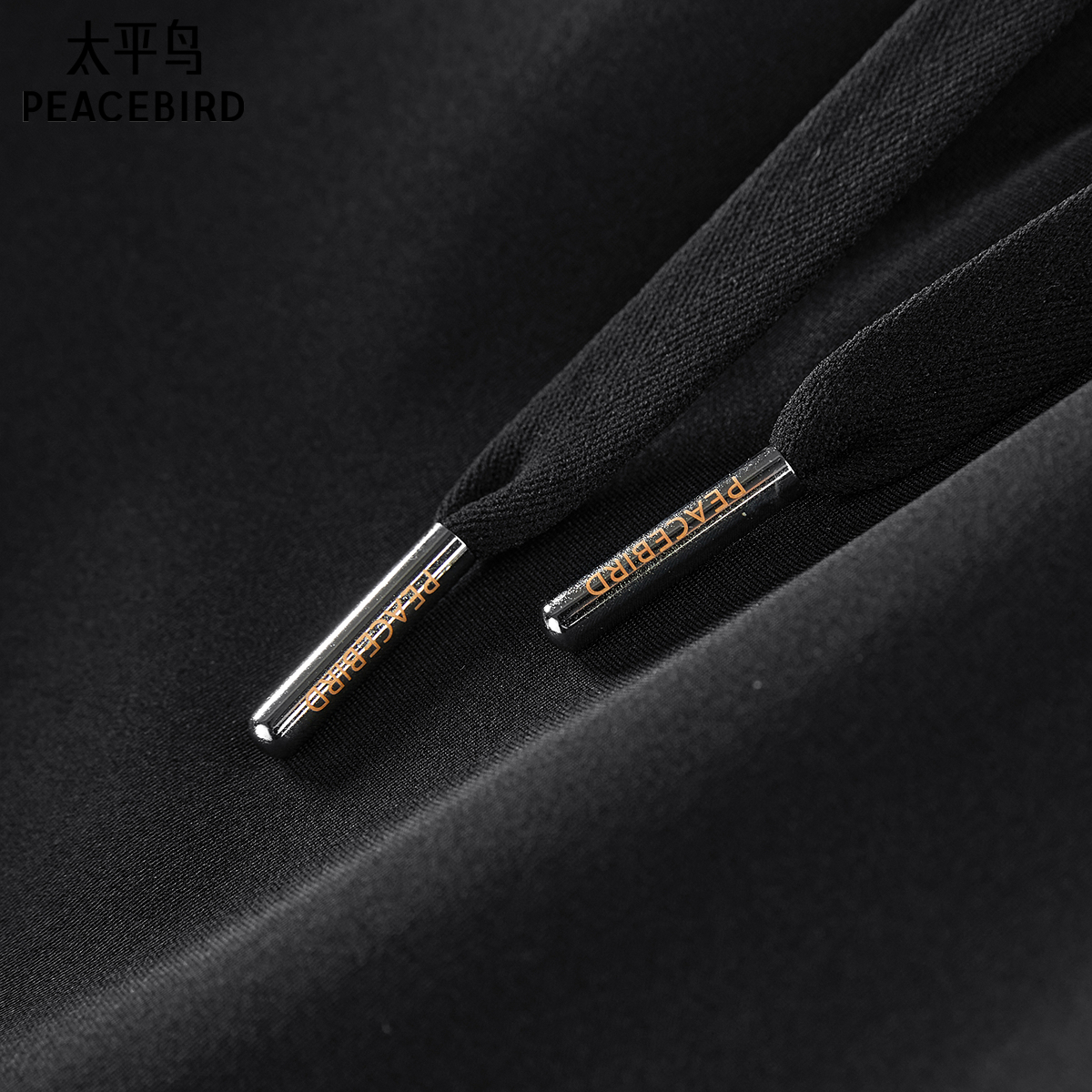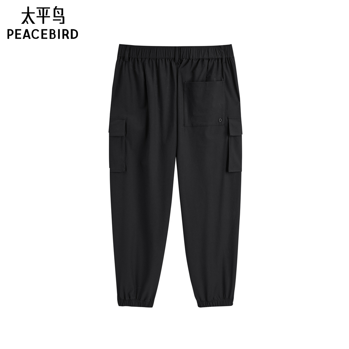 太平鸟男装 工装口袋休闲裤男夏季潮流黑色抽绳束脚锥形裤男