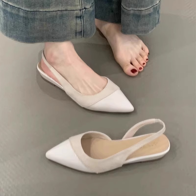温柔仙女低跟单鞋女2025春夏新款法式气质优雅尖头浅口包头凉鞋子