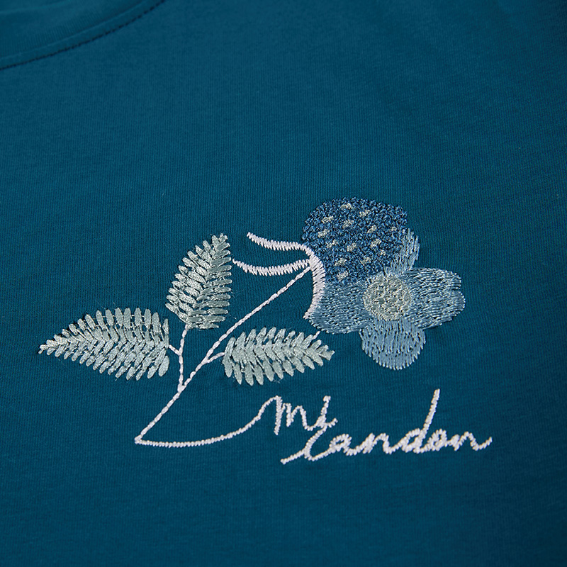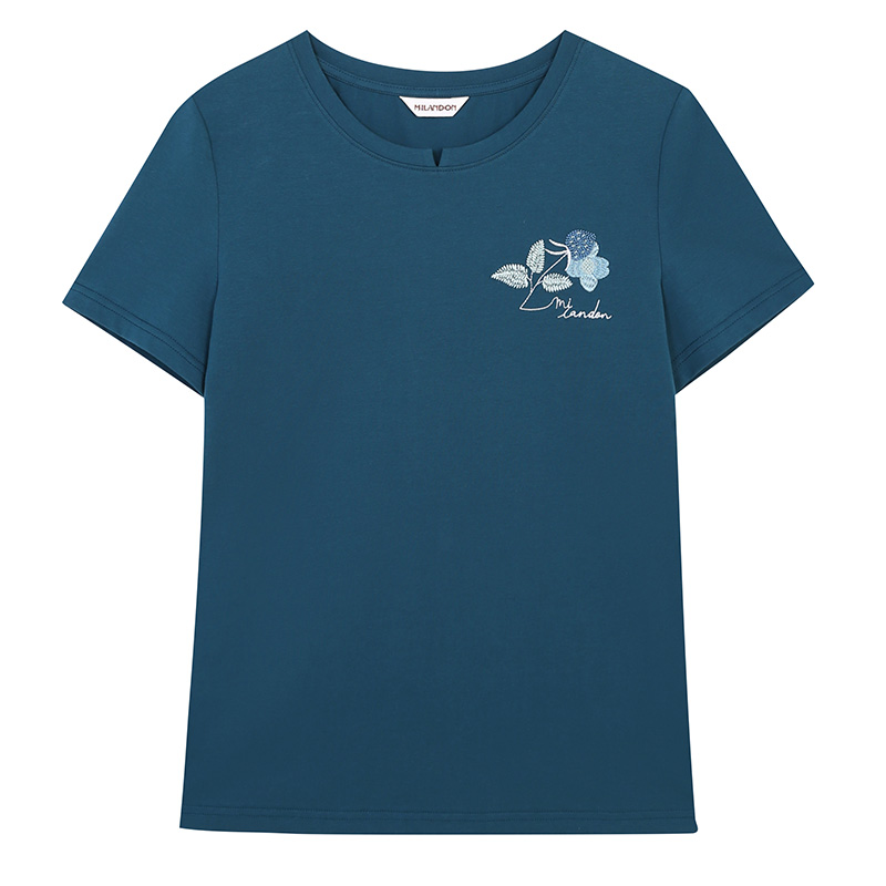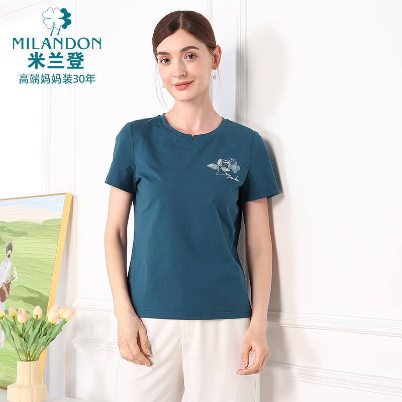 米兰登中老年妈妈装2025年夏季新款圆领绣花T恤女短袖休闲上衣薄