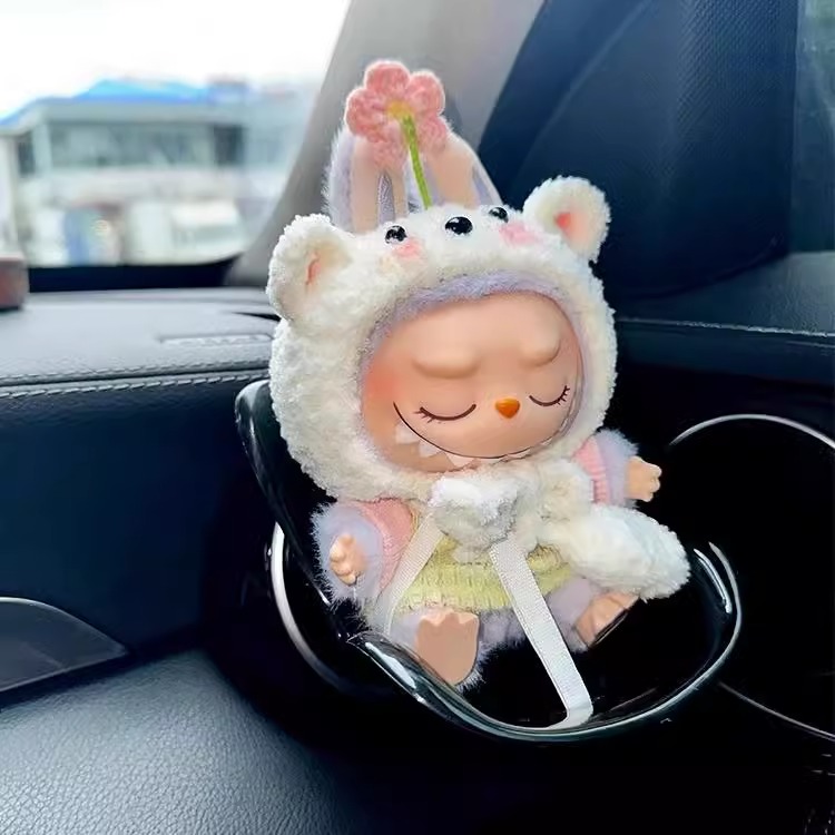 适用拉布布安全座椅labubu泡泡玛特摆件出风口三代娃娃车载座椅