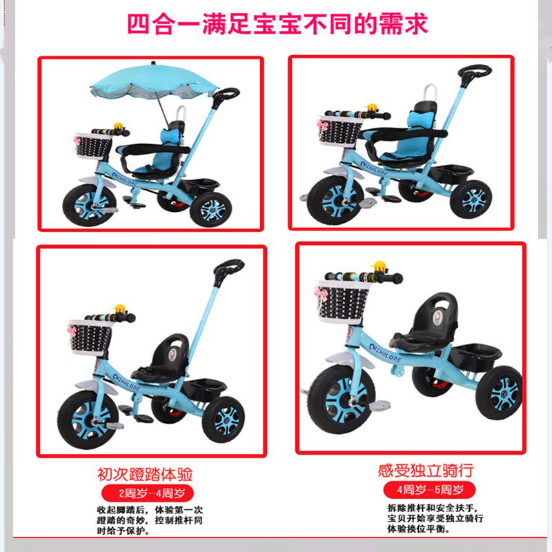 大座儿童三轮车脚踏车婴幼儿手推车宝宝1-3-5岁童车自行车轻便溜