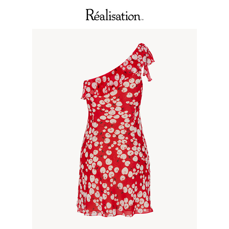RealisationPar 连衣裙红色樱桃真丝斜裁单肩A字裙 The Ruby