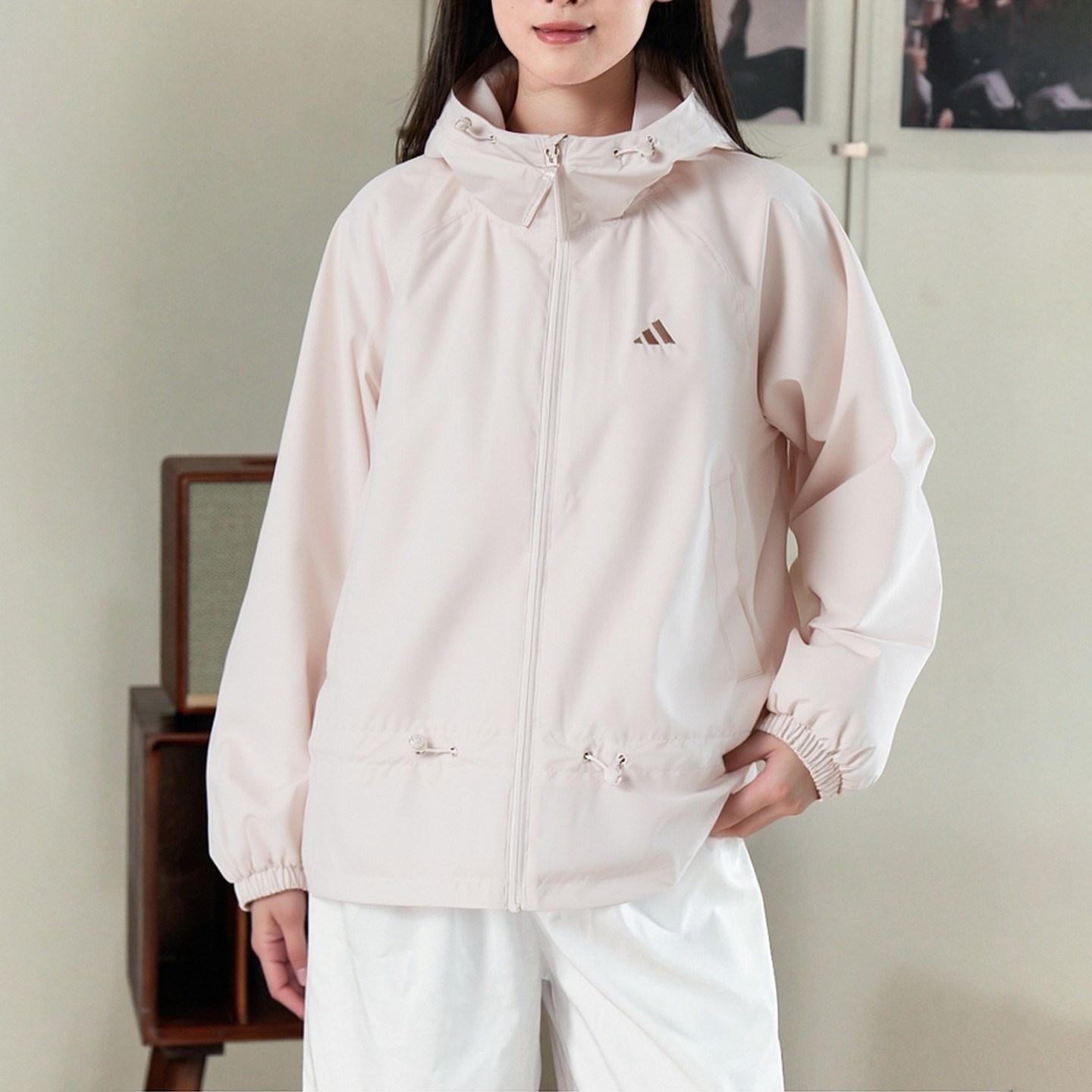 阿迪达斯外套粉色女装冬季加绒保暖运动服25新款梭织连帽运动夹克