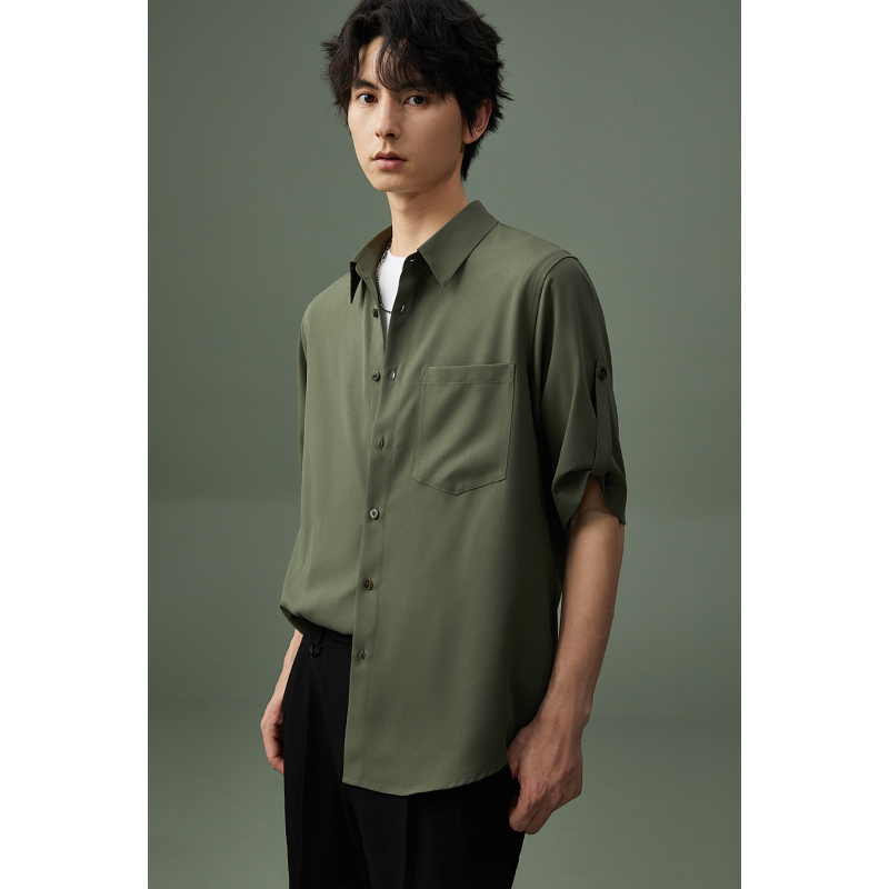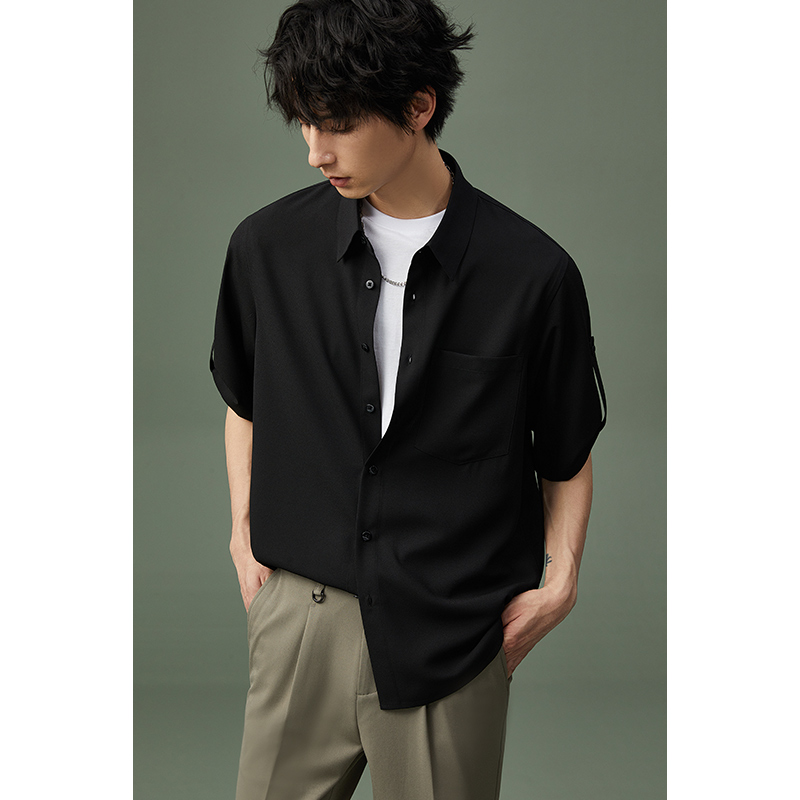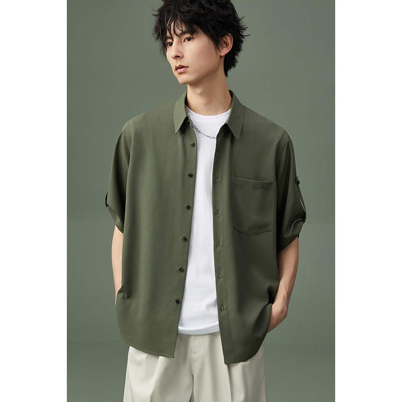 【储格】冰丝短袖衬衫男夏季帅气百搭五分半袖衬衣男士宽松寸衣