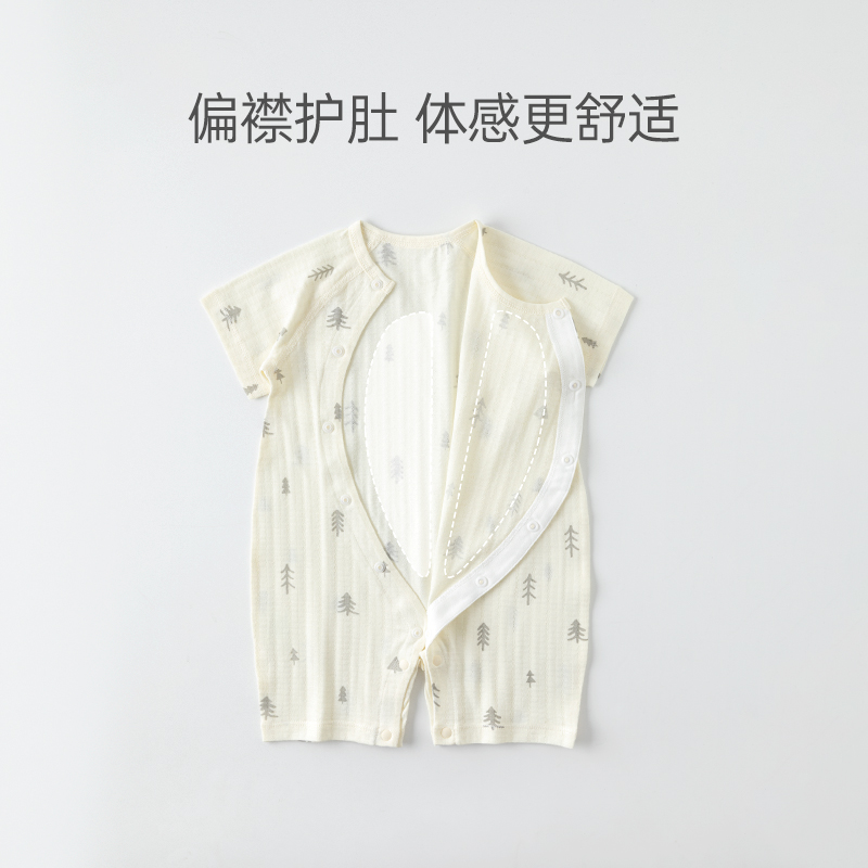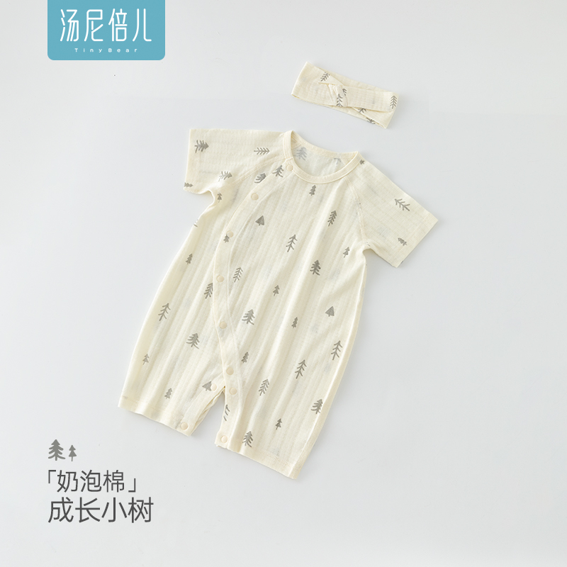 汤尼倍儿婴儿连体衣纯棉短袖轻薄爬服新生儿睡衣宝宝外出哈衣夏季
